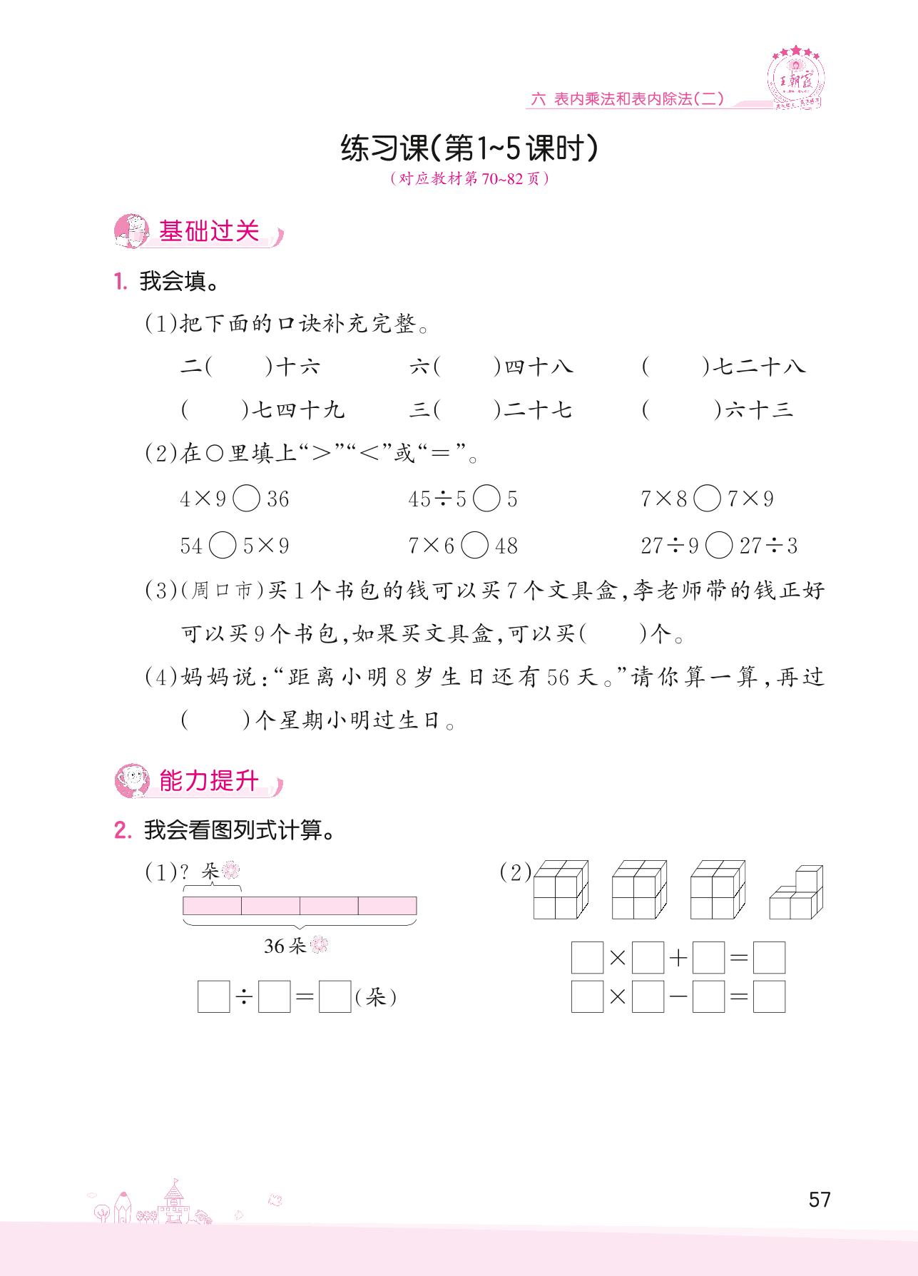 2022上册二年级数学苏教版 六 表内乘法和表内除法(二)——练习课(第1~5课时)