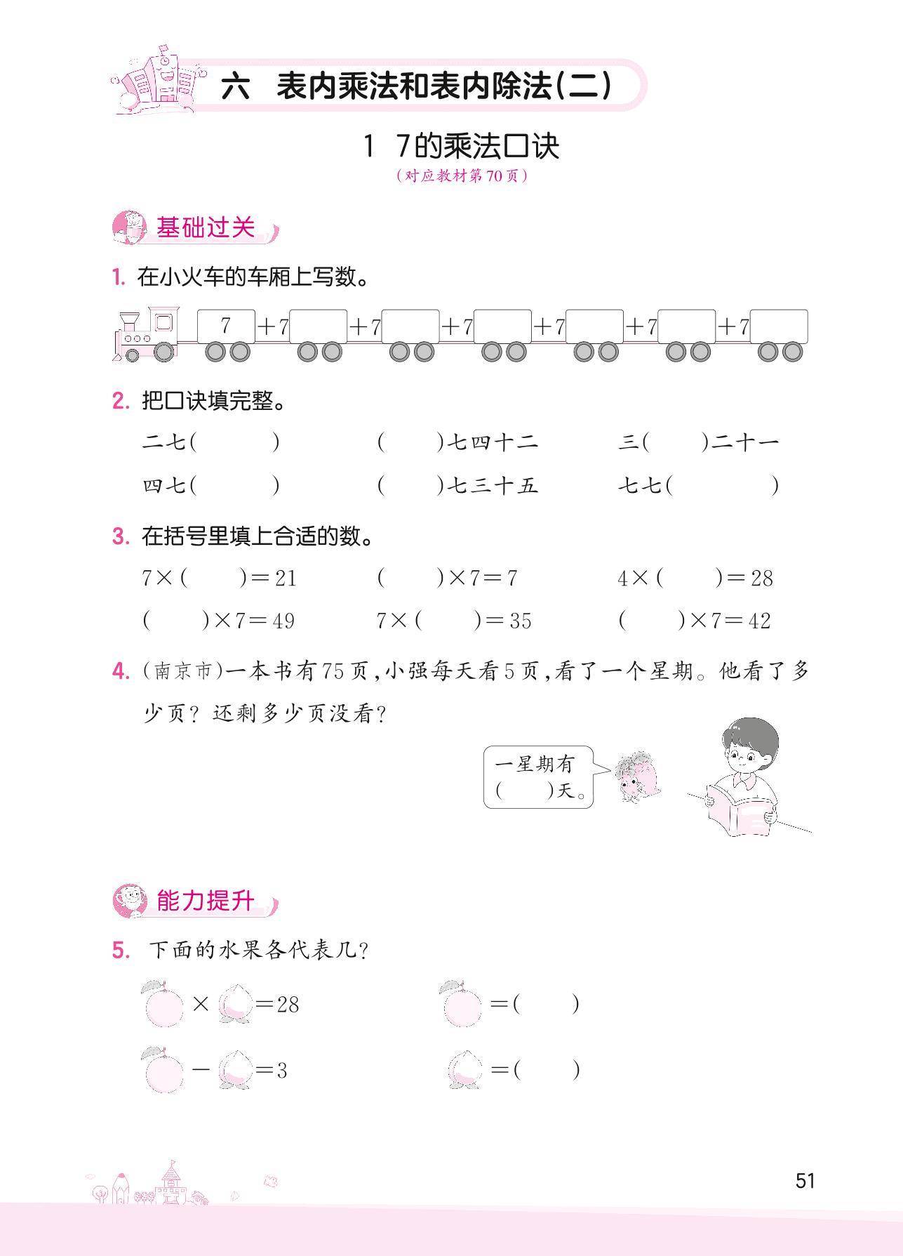 2022上册二年级数学苏教版 六 表内乘法和表内除法(二)——1 7的乘法口诀