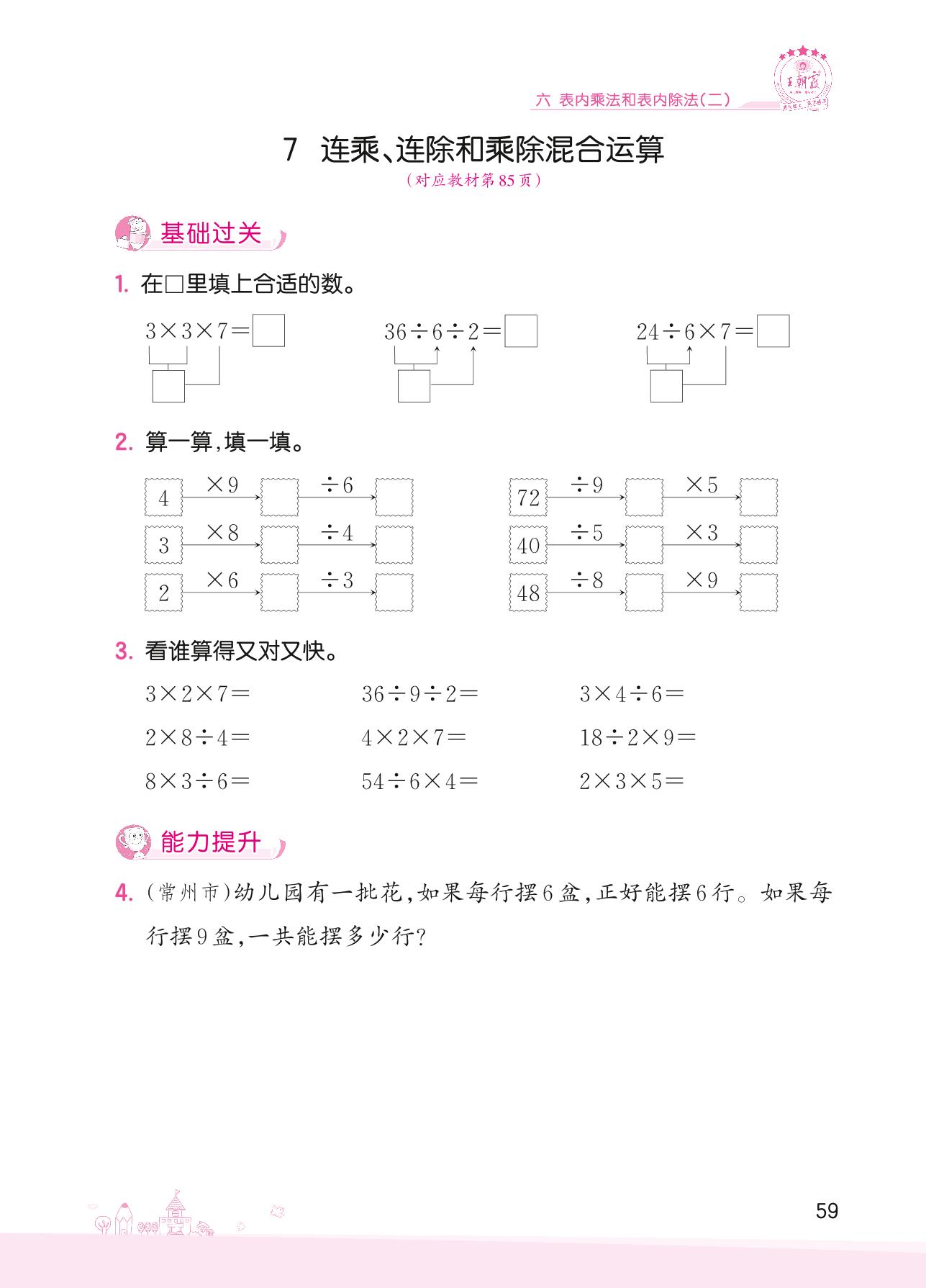 2022上册二年级数学苏教版 六 表内乘法和表内除法(二)——7 连乘、连除和乘除混合运算