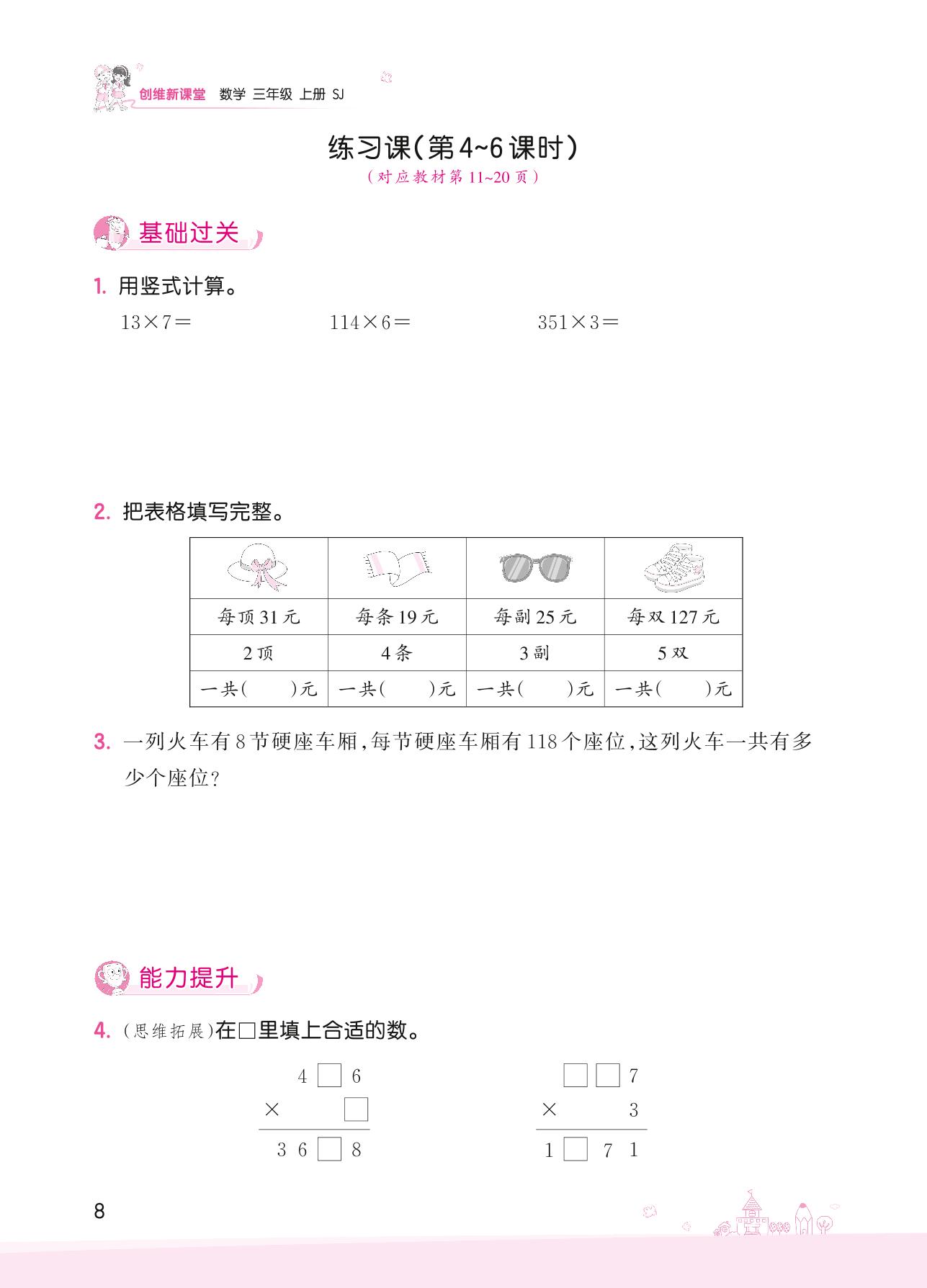 2022上册三年级数学苏教版 一 两、三位数乘一位数——练习课(第4~6课时)
