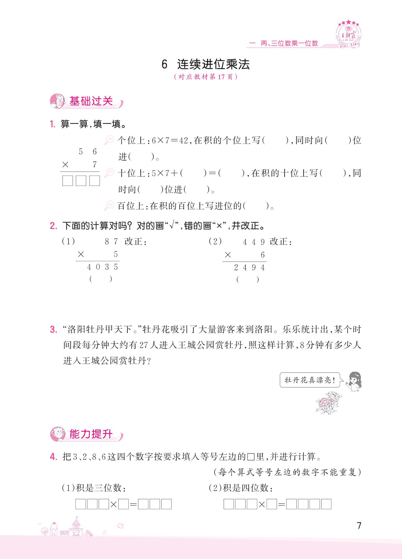 2022上册三年级数学苏教版 一 两、三位数乘一位数——6 连续进位乘法