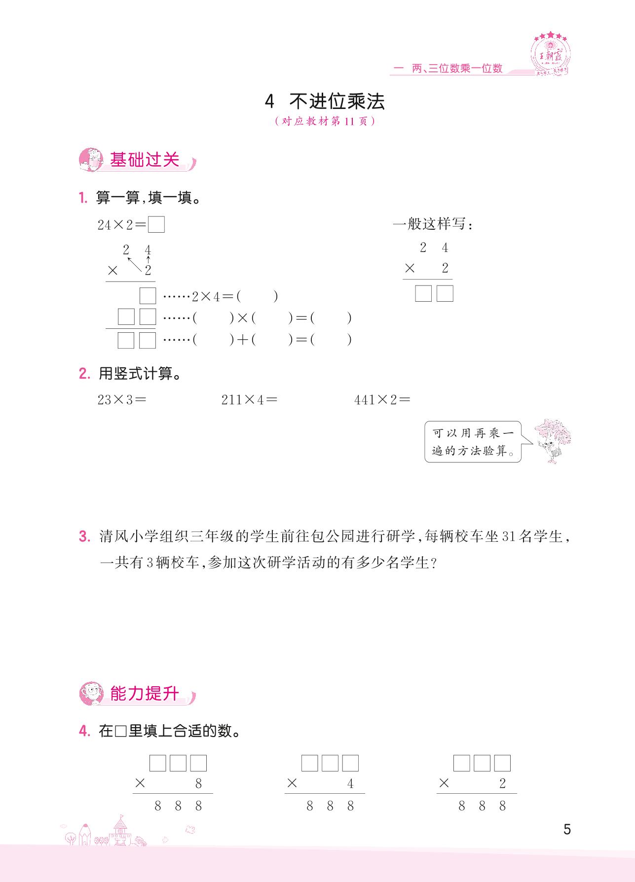 2022上册三年级数学苏教版 一 两、三位数乘一位数——4 不进位乘法