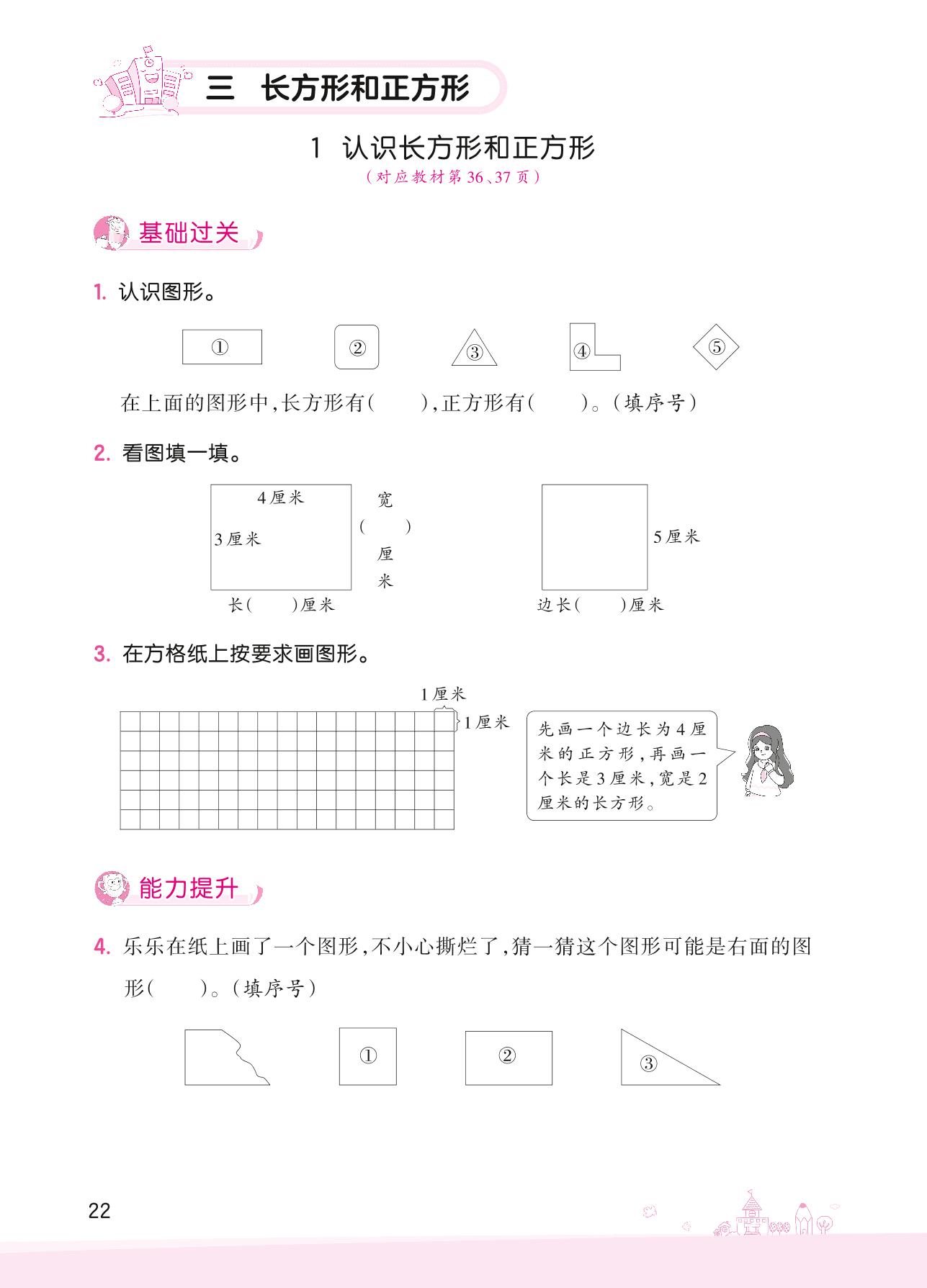 2022上册三年级数学苏教版 三 长方形和正方形——1 认识长方形和正方形