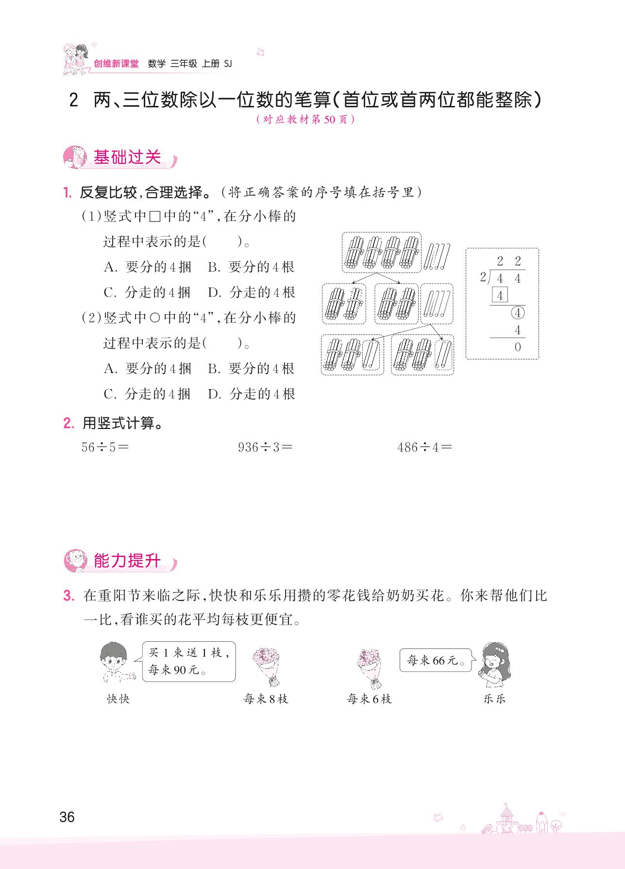 2022上册三年级数学苏教版 四 两、三位数除以一位数——2 两、三位数除以一位数的笔算(首位或首两位都能整除)