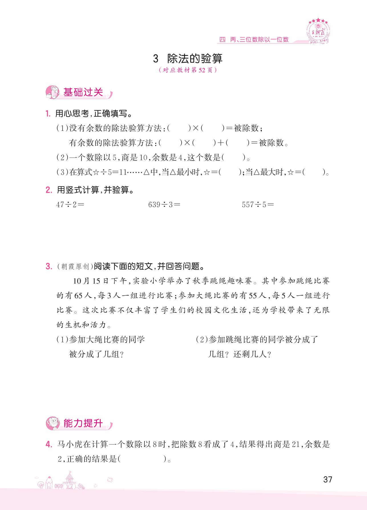 2022上册三年级数学苏教版 四 两、三位数除以一位数——3 除法的验算