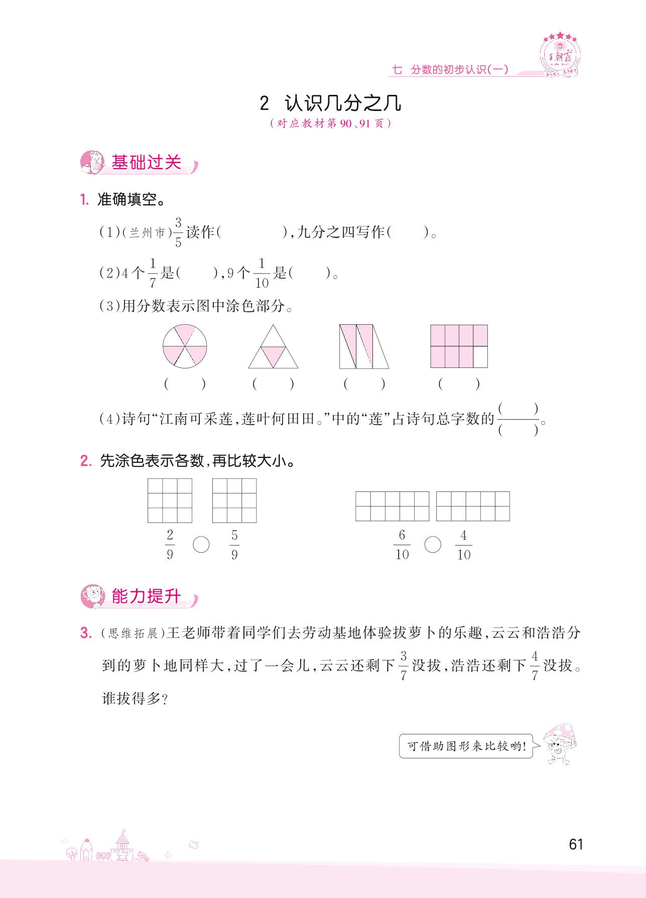 2022上册三年级数学苏教版 七 分数的初步认识(一)——2 认识几分之几