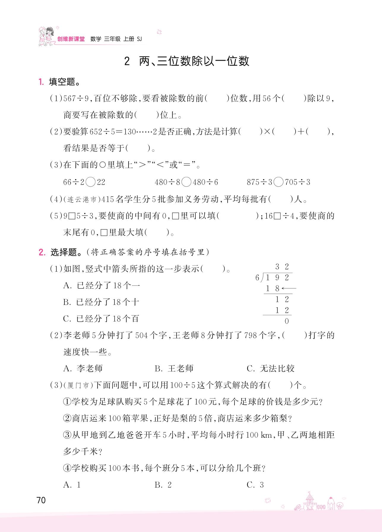 2022上册三年级数学苏教版 八 期末复习——2 两、三位数除以一位数