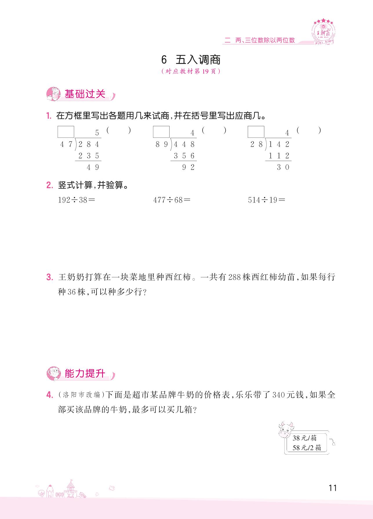 2022上册四年级数学苏教版 二 两、三位数除以两位数——6 五入调商