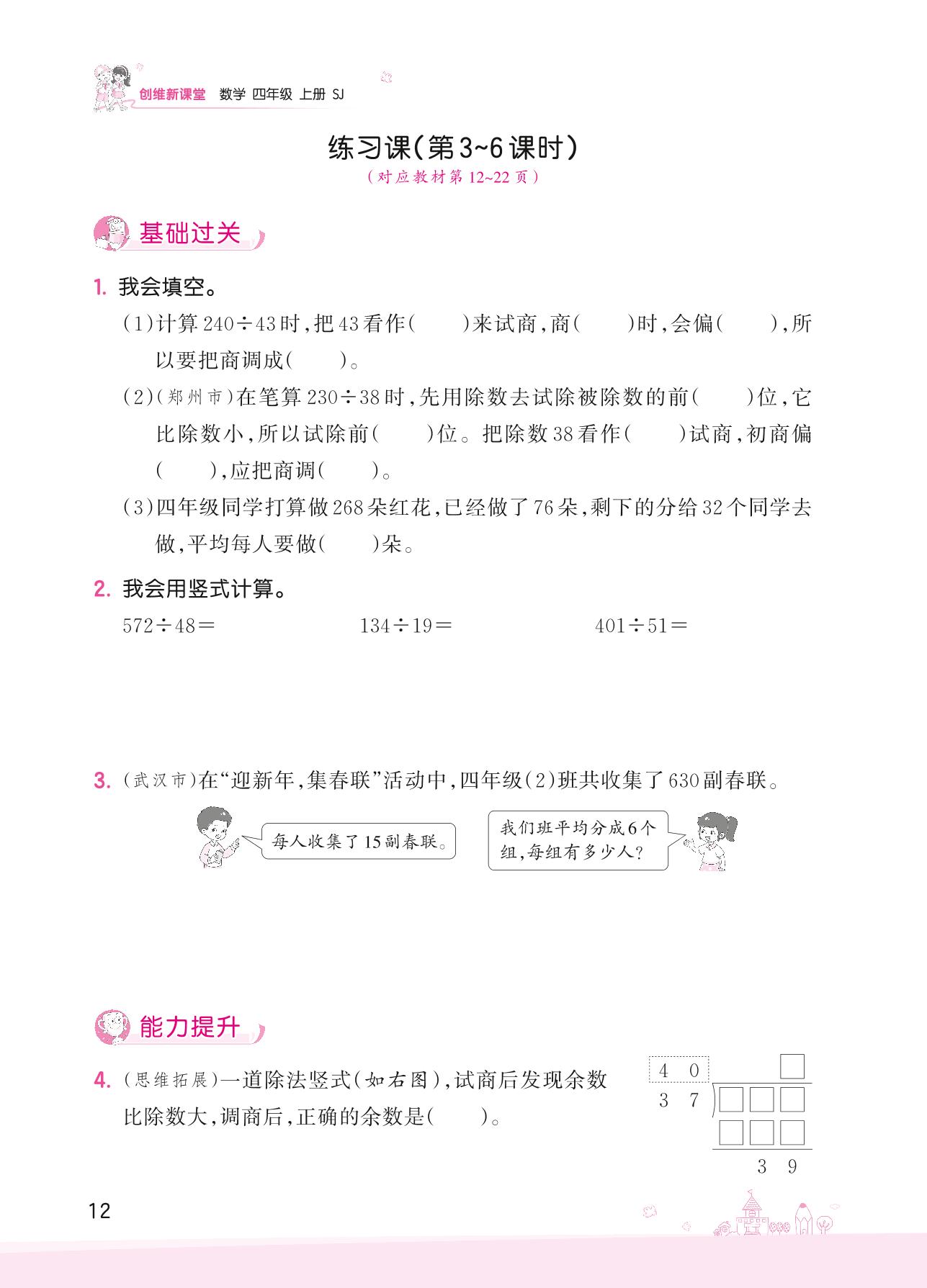 2022上册四年级数学苏教版 二 两、三位数除以两位数——练习课(第3~6课时)