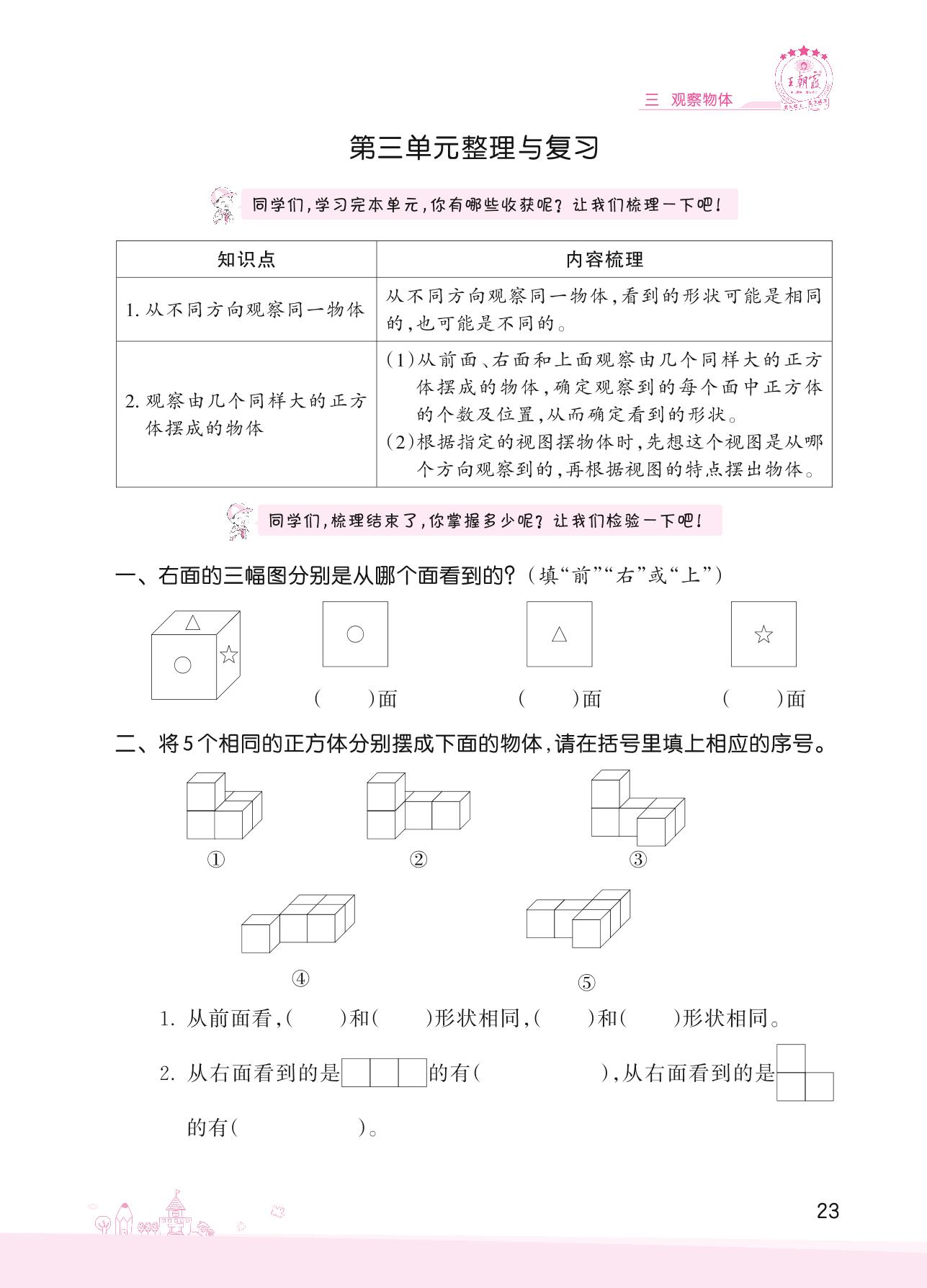 2022上册四年级数学苏教版 三 观察物体——第三单元整理与复习