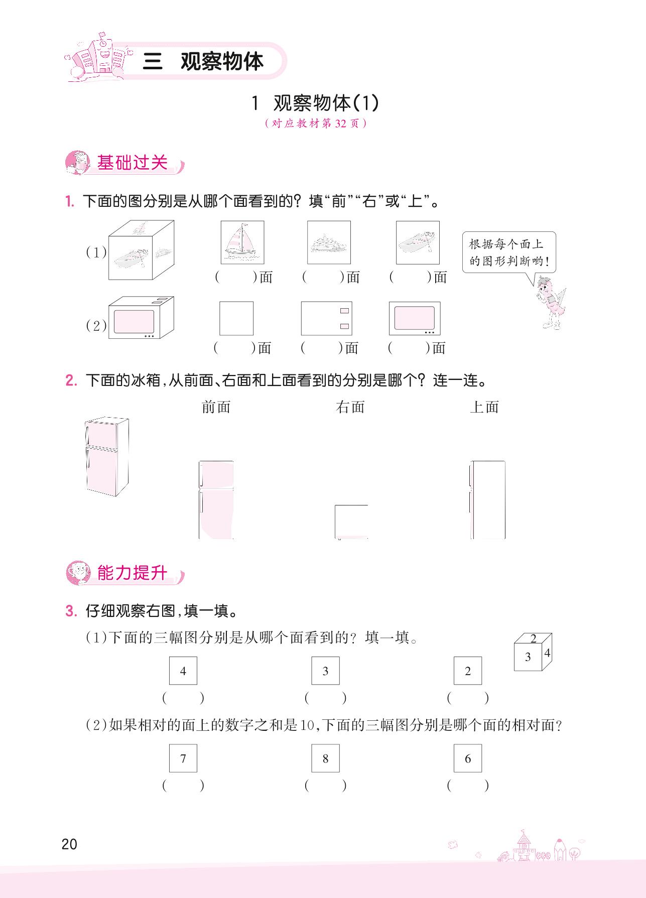 2022上册四年级数学苏教版 三 观察物体——1 观察物体(1)