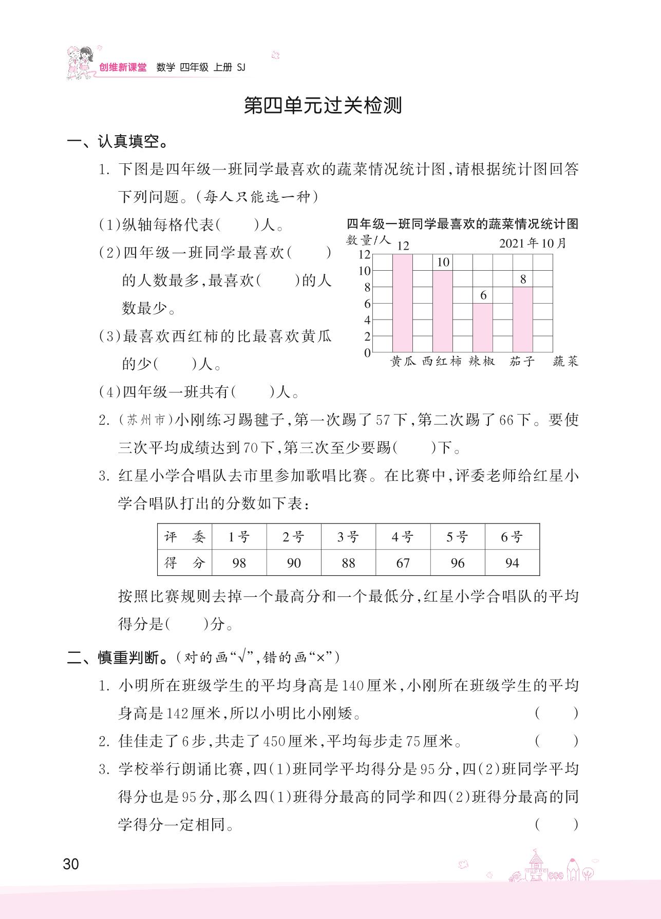 2022上册四年级数学苏教版 四 统计表和条形统计图(一)——第四单元过关检测