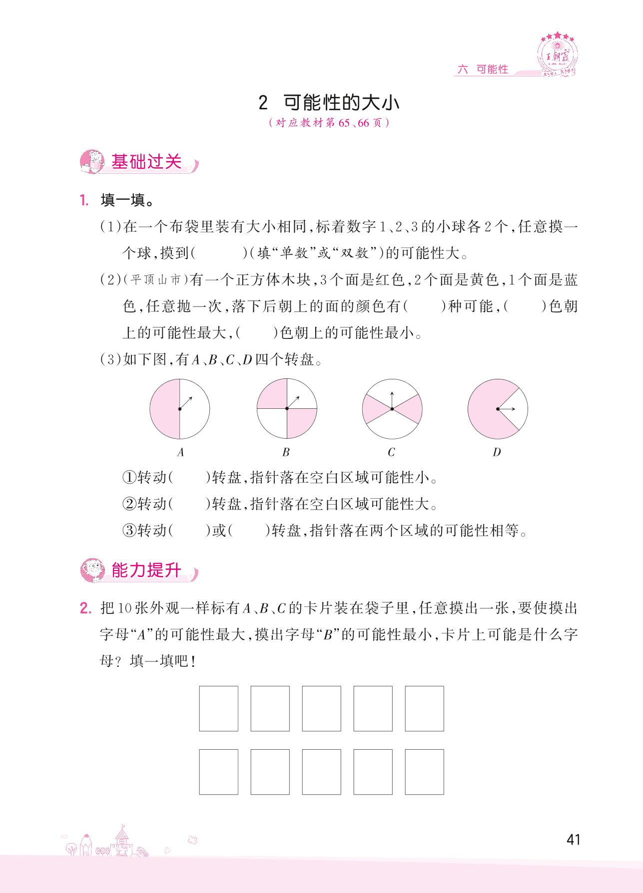 2022上册四年级数学苏教版 六 可能性——2 可能性的大小