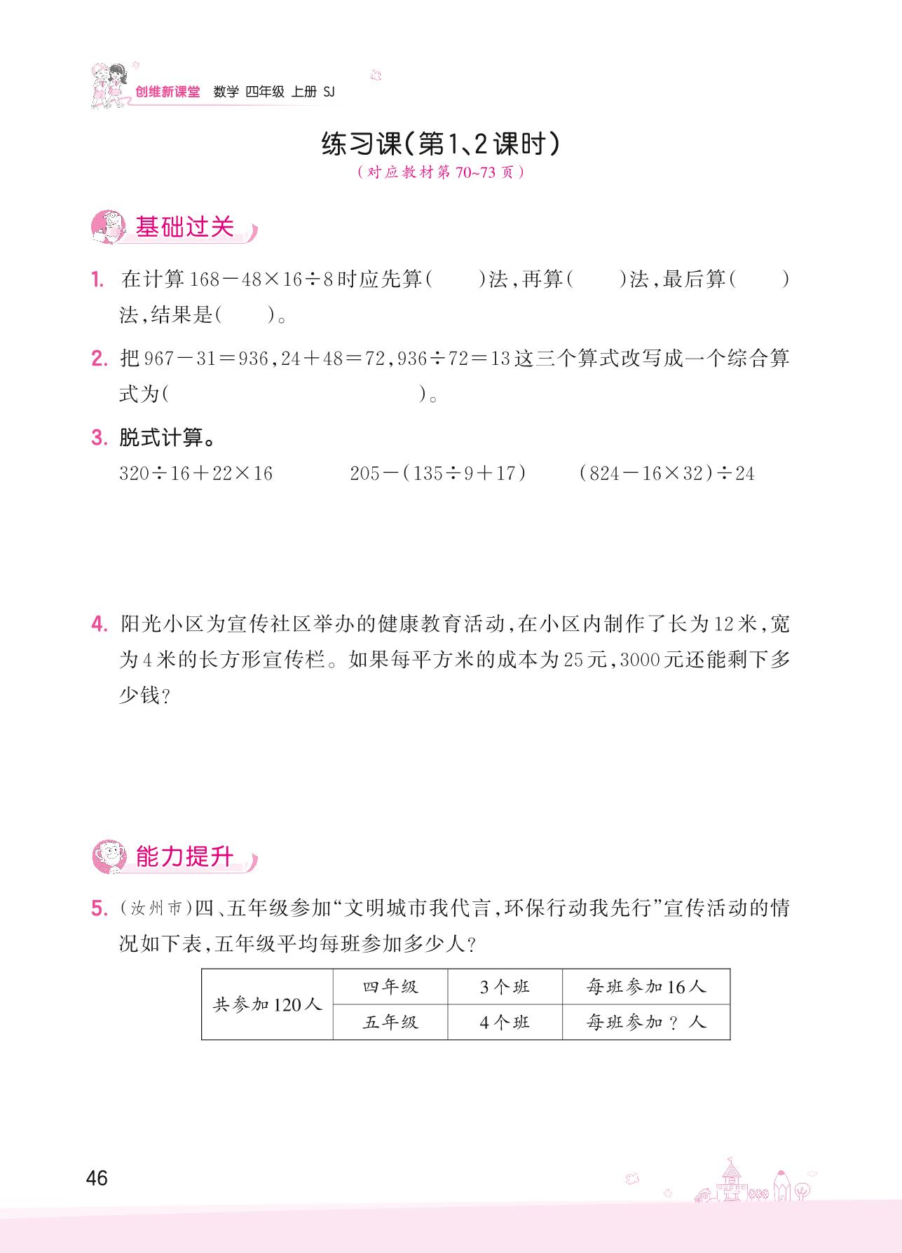 2022上册四年级数学苏教版 七 整数四则混合运算——练习课(第1、2课时)