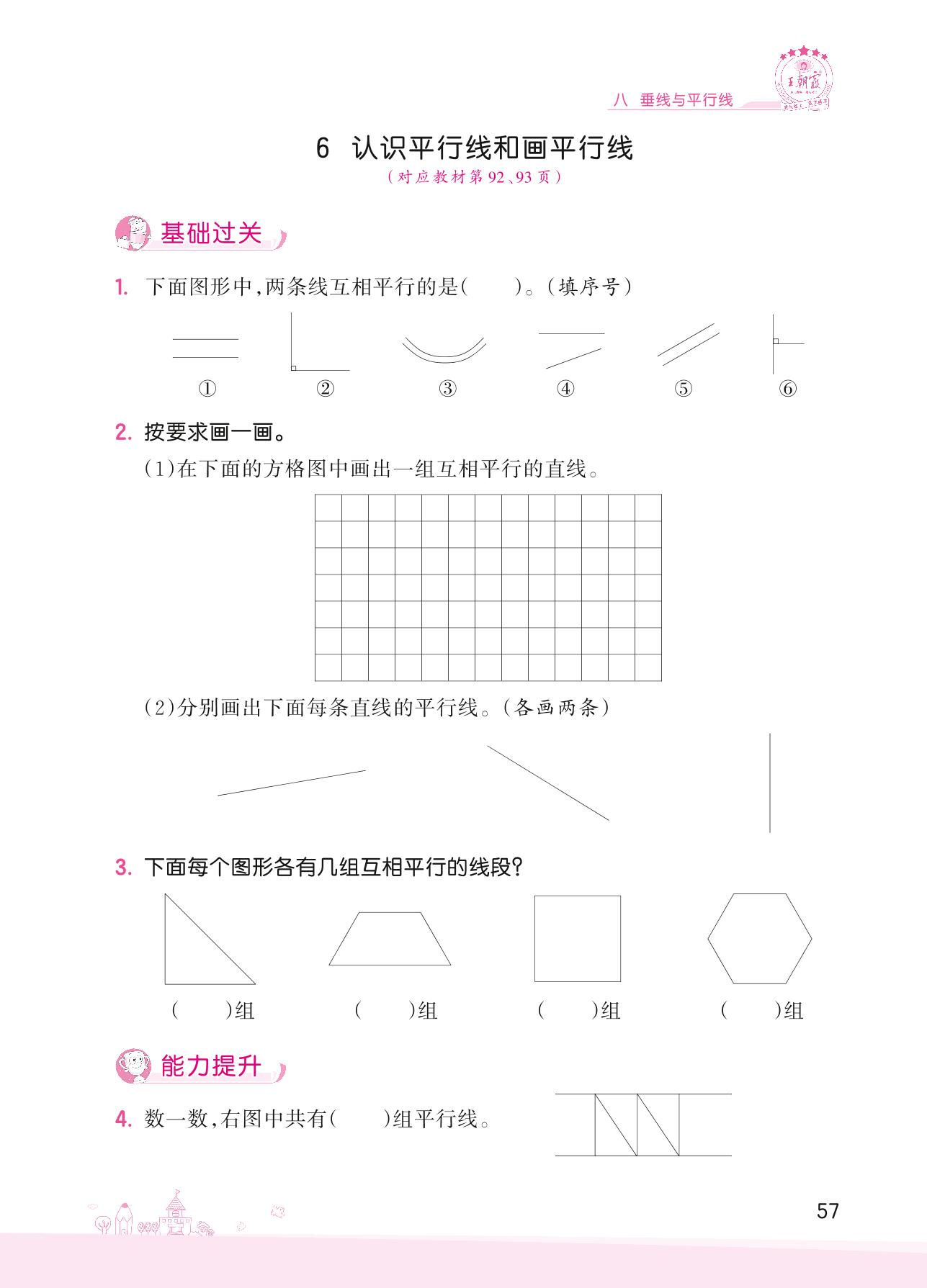 2022上册四年级数学苏教版 八 垂线与平行线——6 认识平行线和画平行线