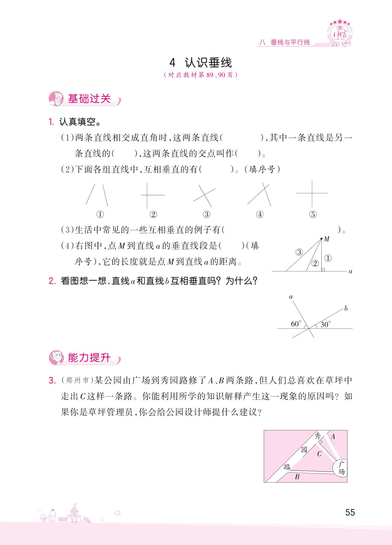 2022上册四年级数学苏教版 八 垂线与平行线——4 认识垂线