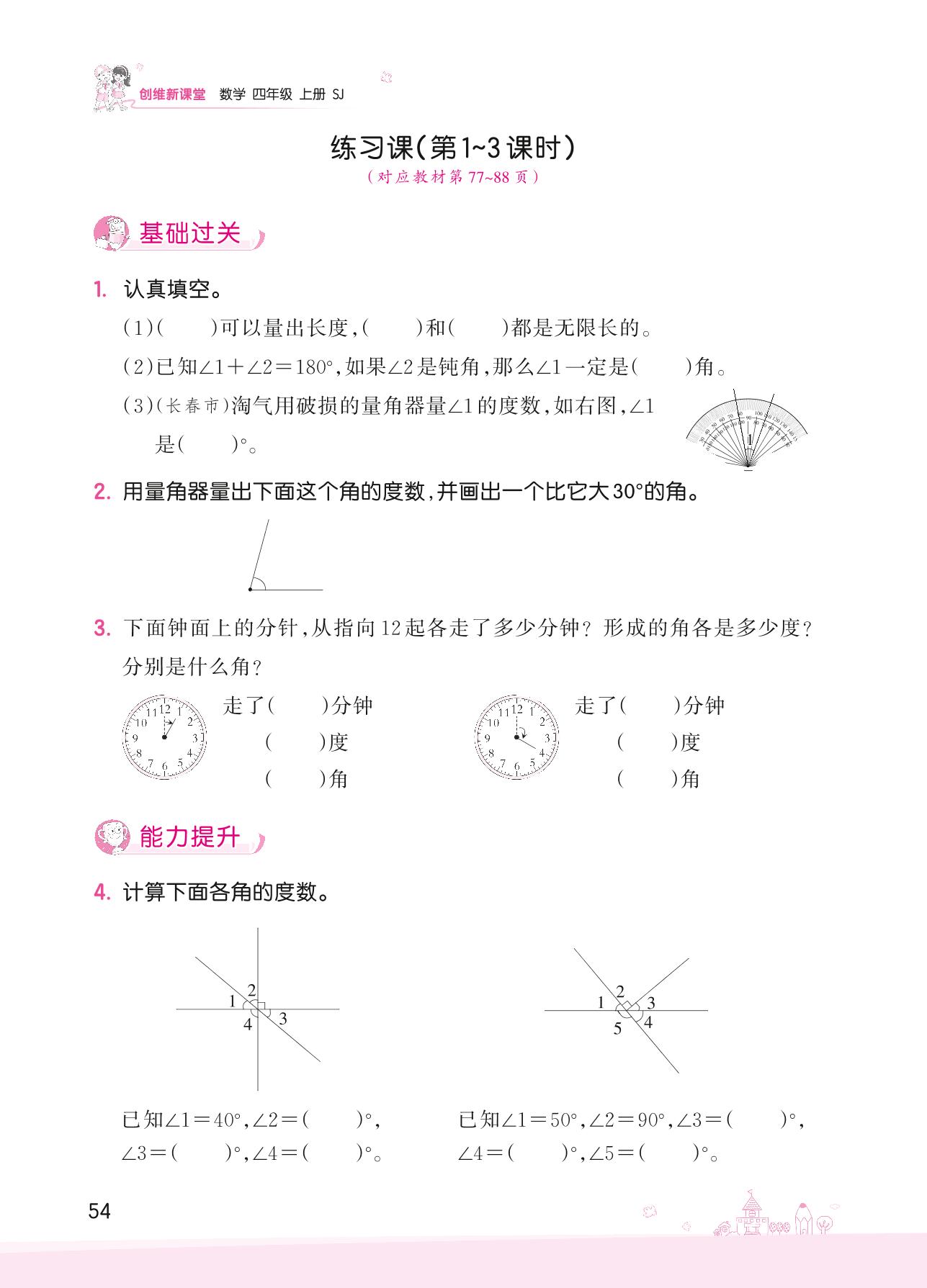 2022上册四年级数学苏教版 八 垂线与平行线——练习课(第1~3课时)