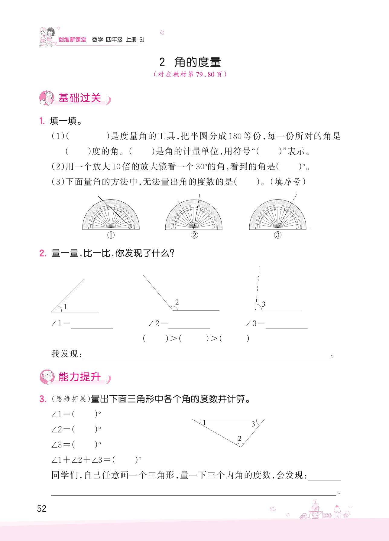 2022上册四年级数学苏教版 八 垂线与平行线——2 角的度量