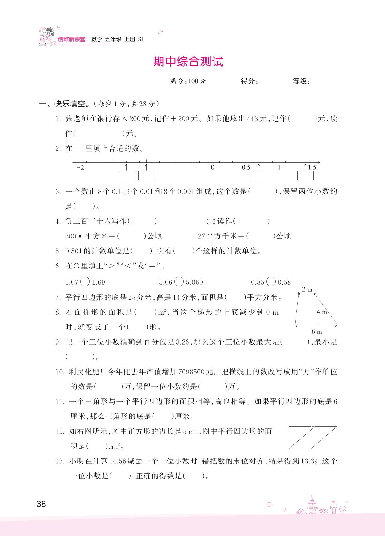 五年级数学苏教版上册期中卷
