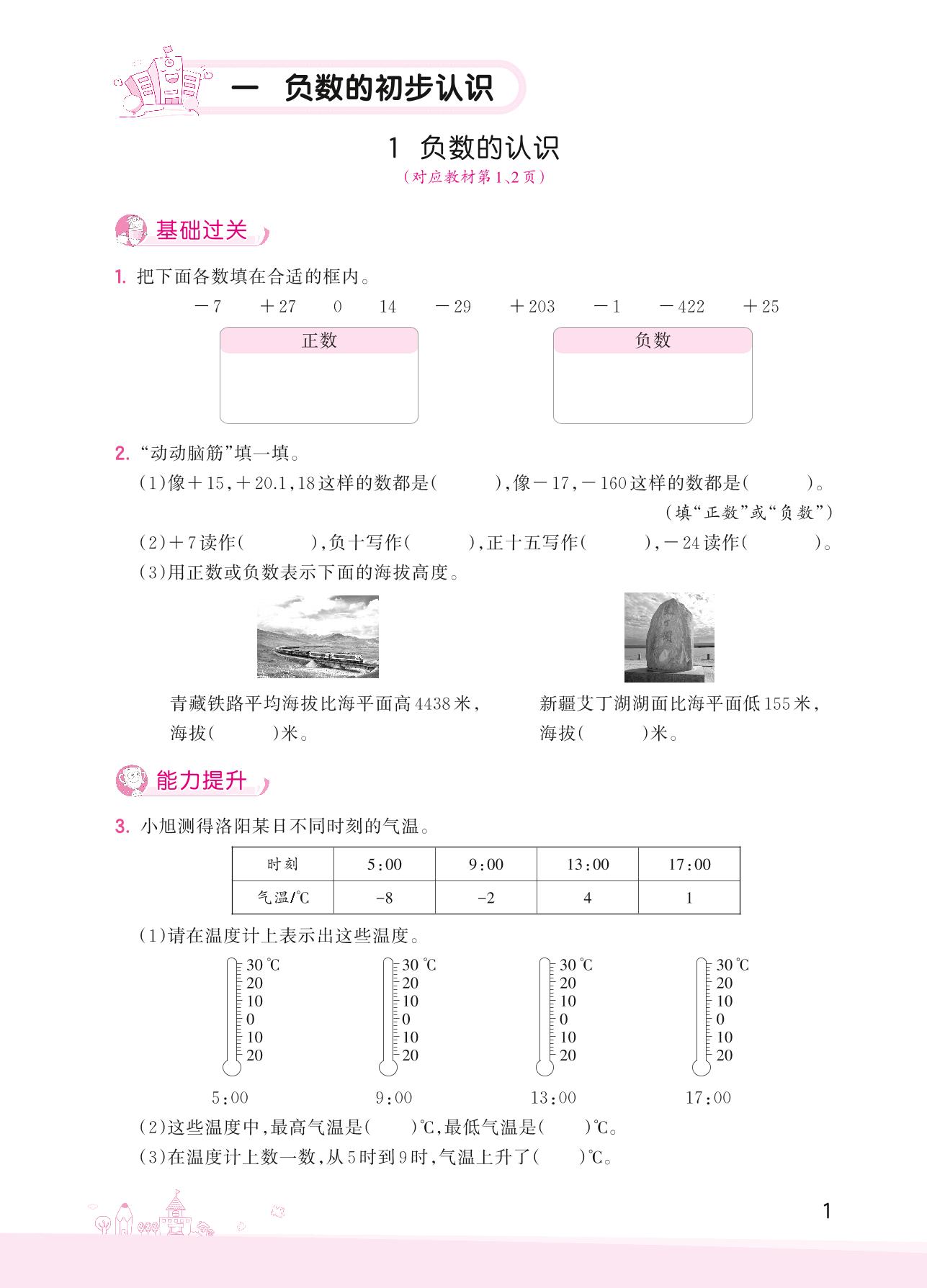 2022上册五年级数学苏教版 一 负数的初步认识——1 负数的认识