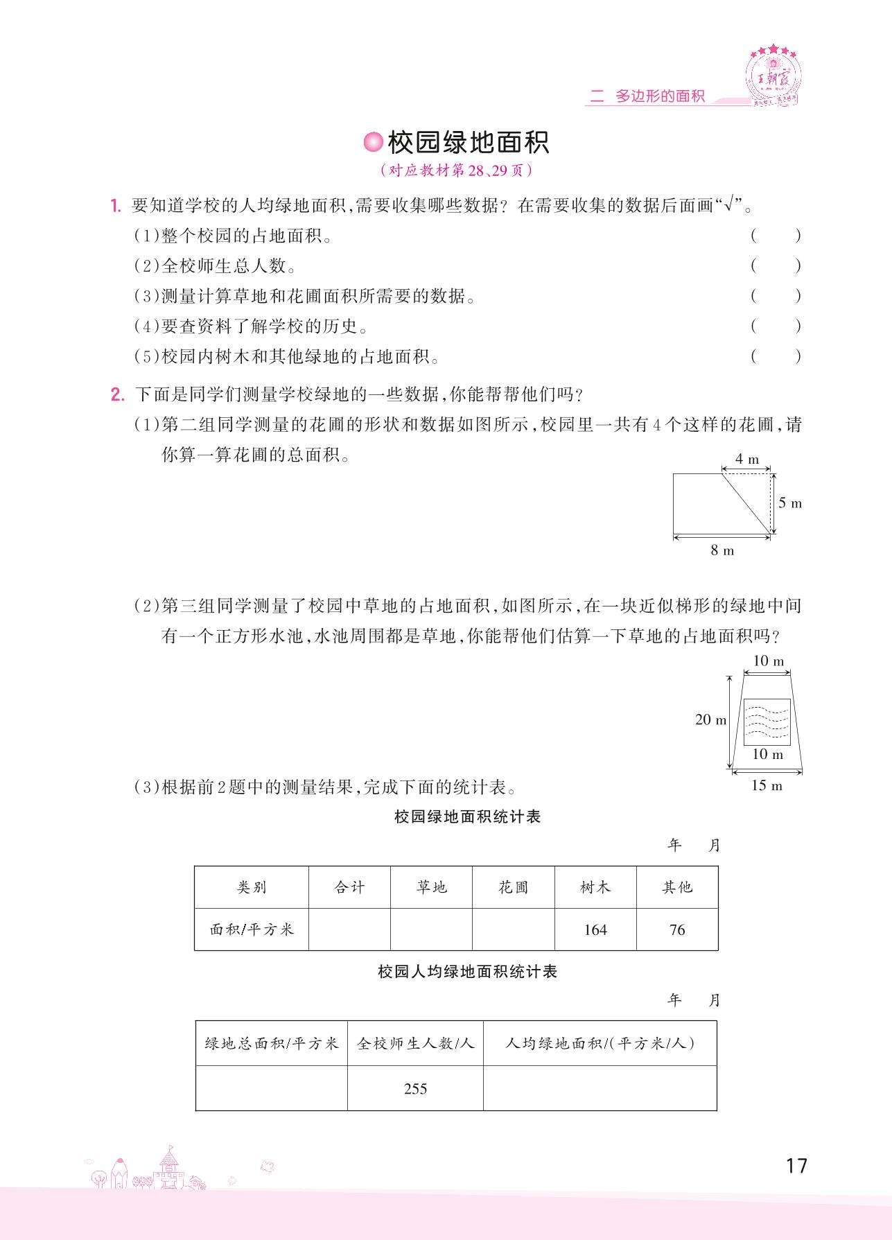 2022上册五年级数学苏教版 二 多边形的面积——校园绿地面积