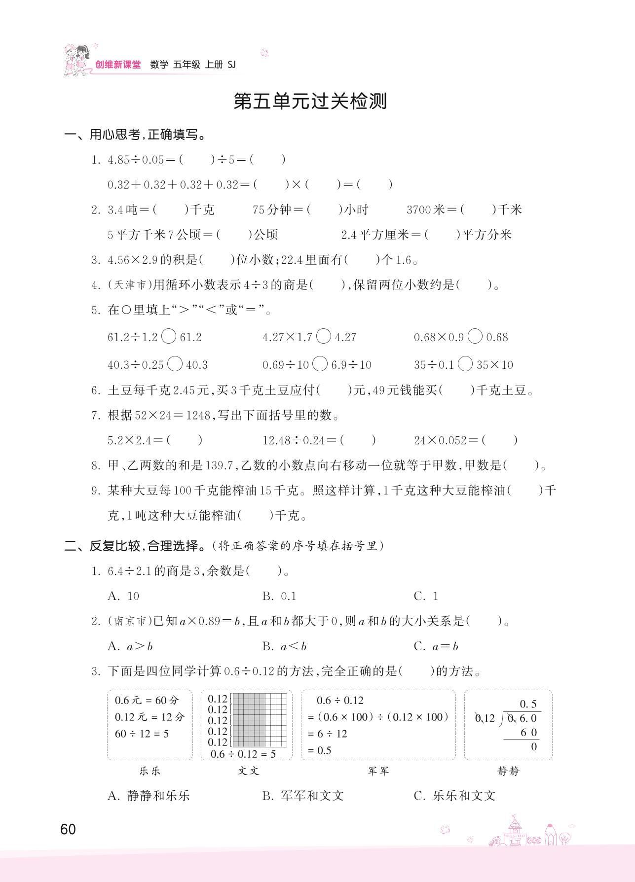 五年级数学苏教版上册单元卷