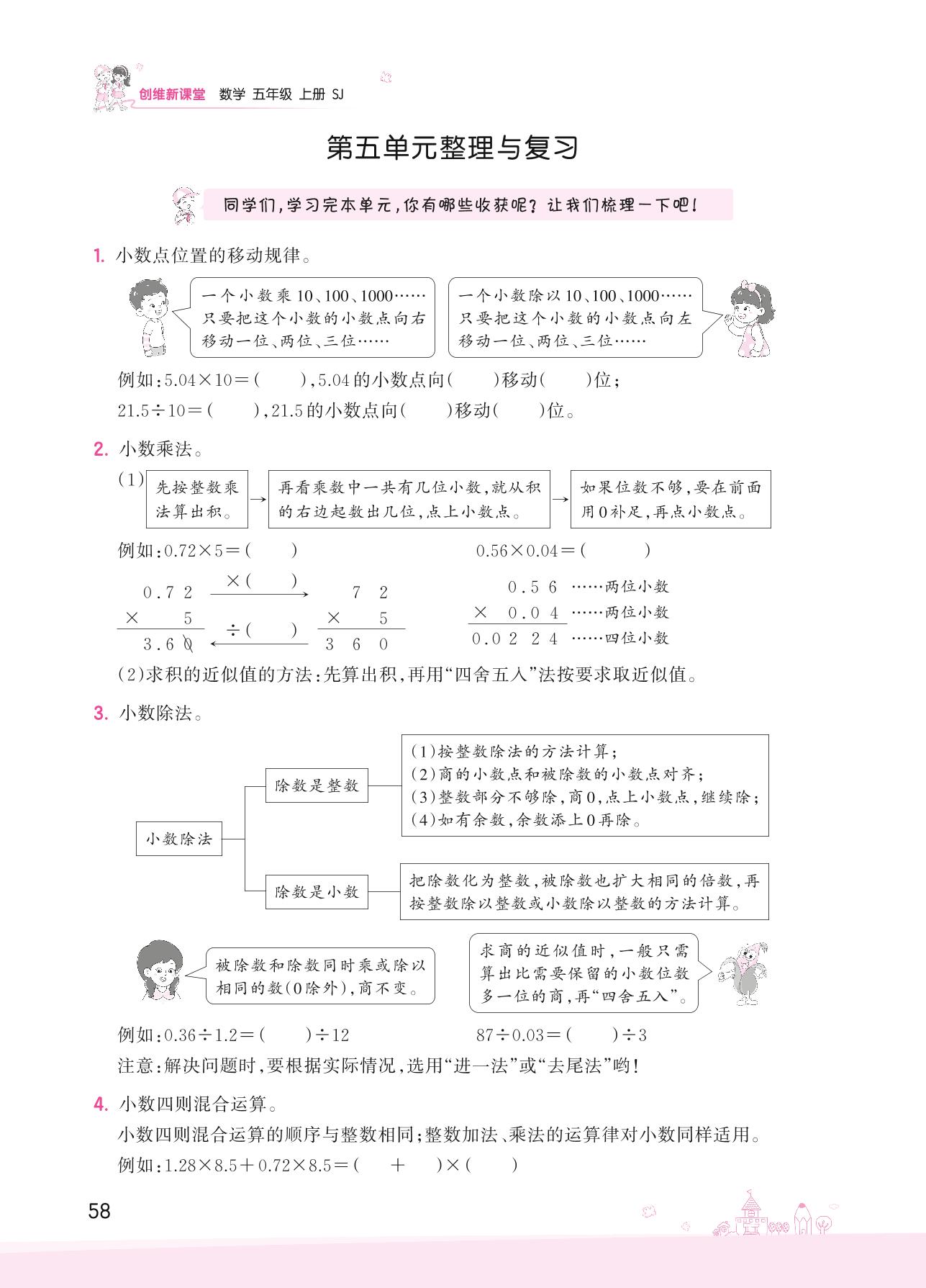 2022上册五年级数学苏教版 五 小数乘法和除法——第五单元整理与复习