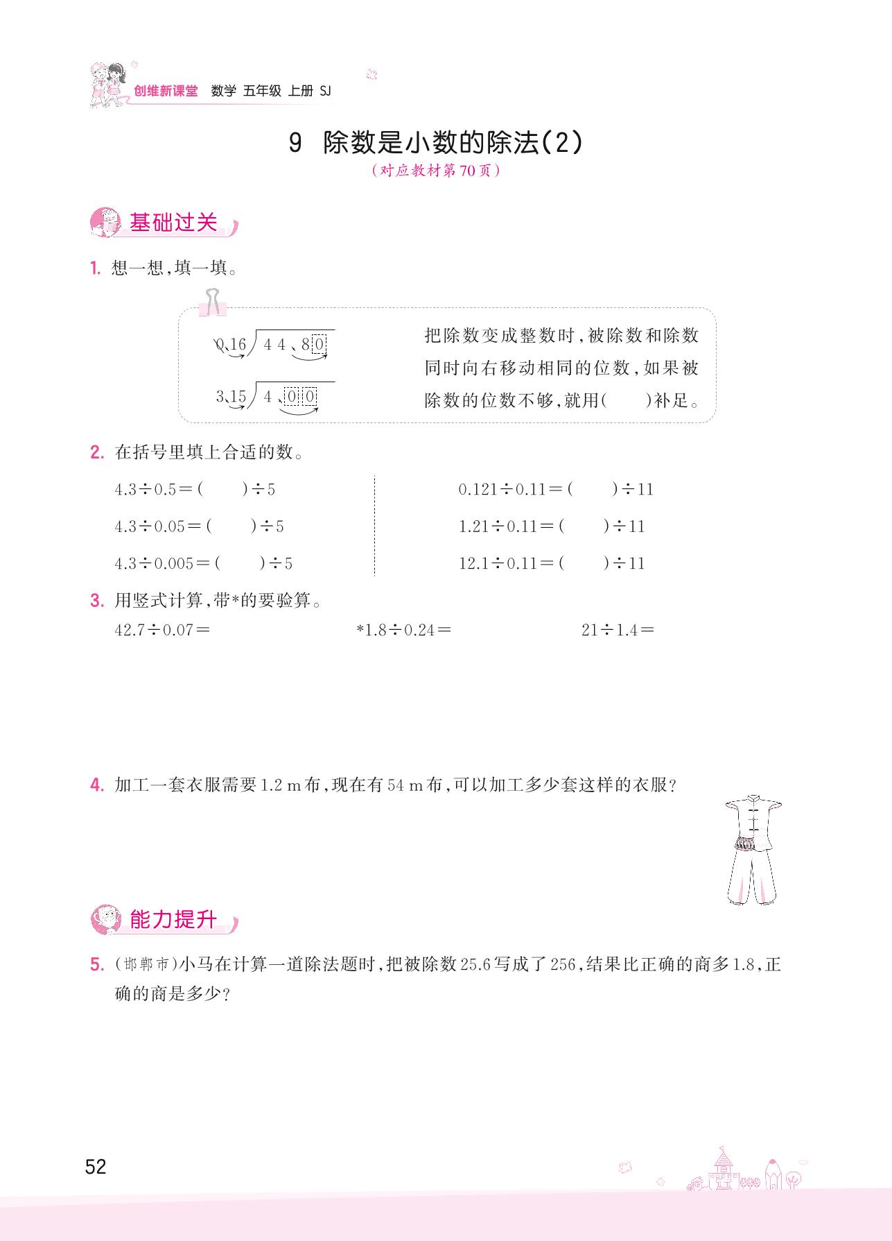 2022上册五年级数学苏教版 五 小数乘法和除法——9 除数是小数的除法(2)