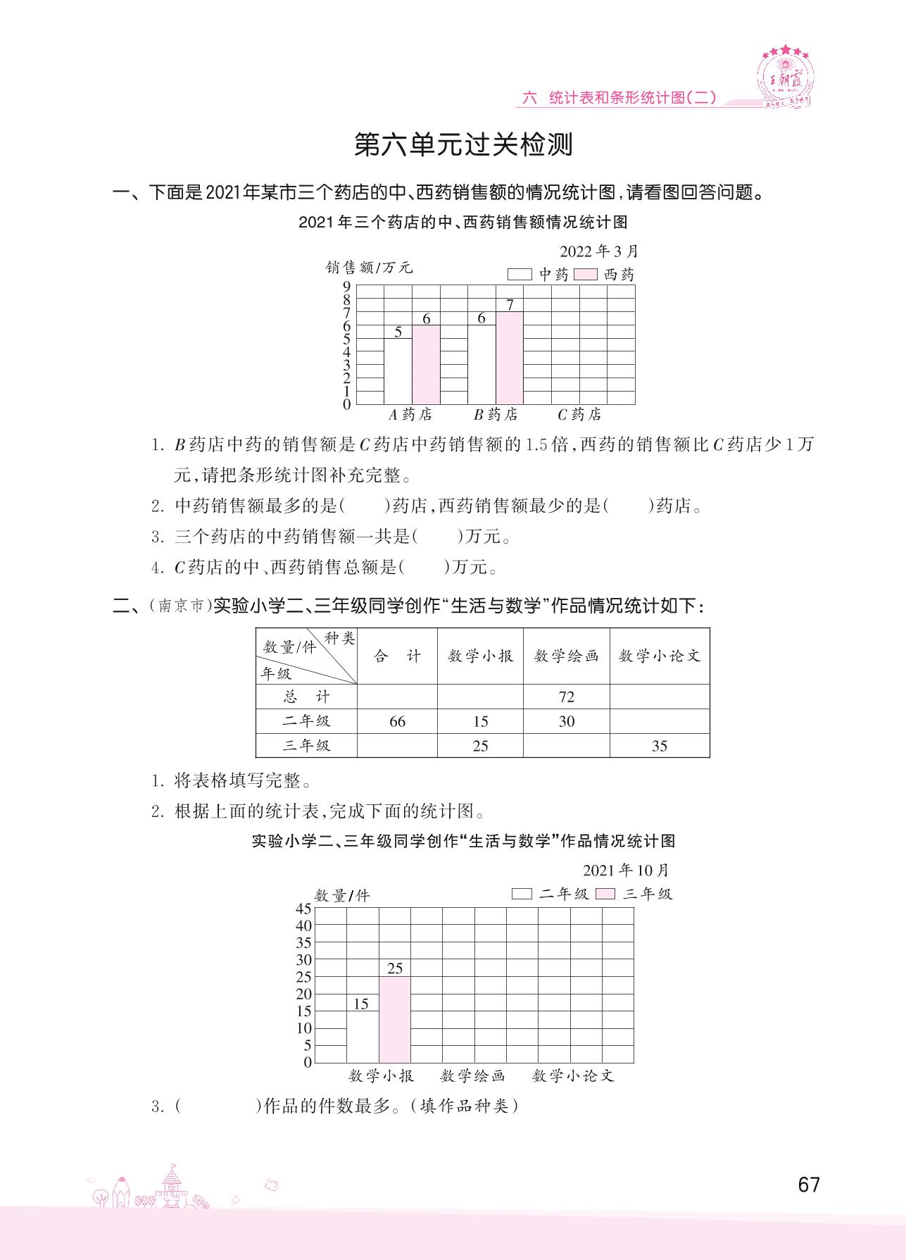 2022上册五年级数学苏教版 六 统计表和条形统计图(二)——第六单元过关检测