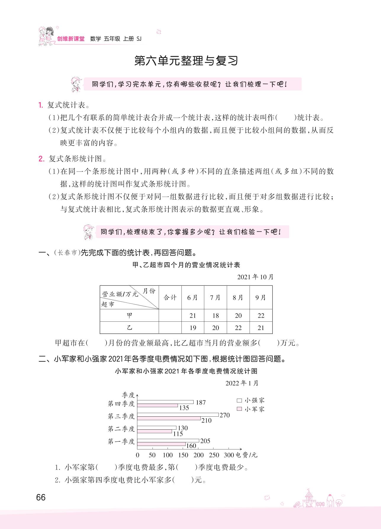 2022上册五年级数学苏教版 六 统计表和条形统计图(二)——第六单元整理与复习