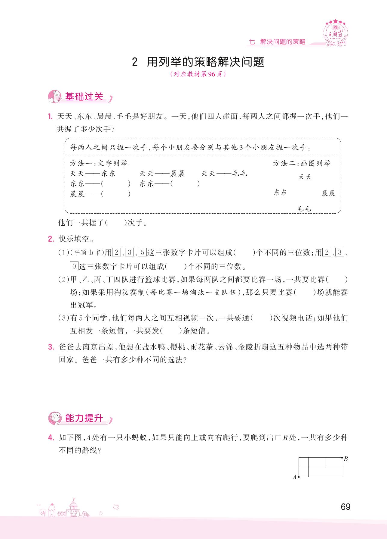 2022上册五年级数学苏教版 七 解决问题的策略——2 用列举的策略解决问题