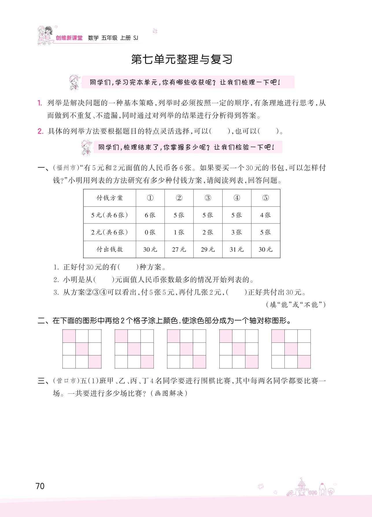 2022上册五年级数学苏教版 七 解决问题的策略——第七单元整理与复习