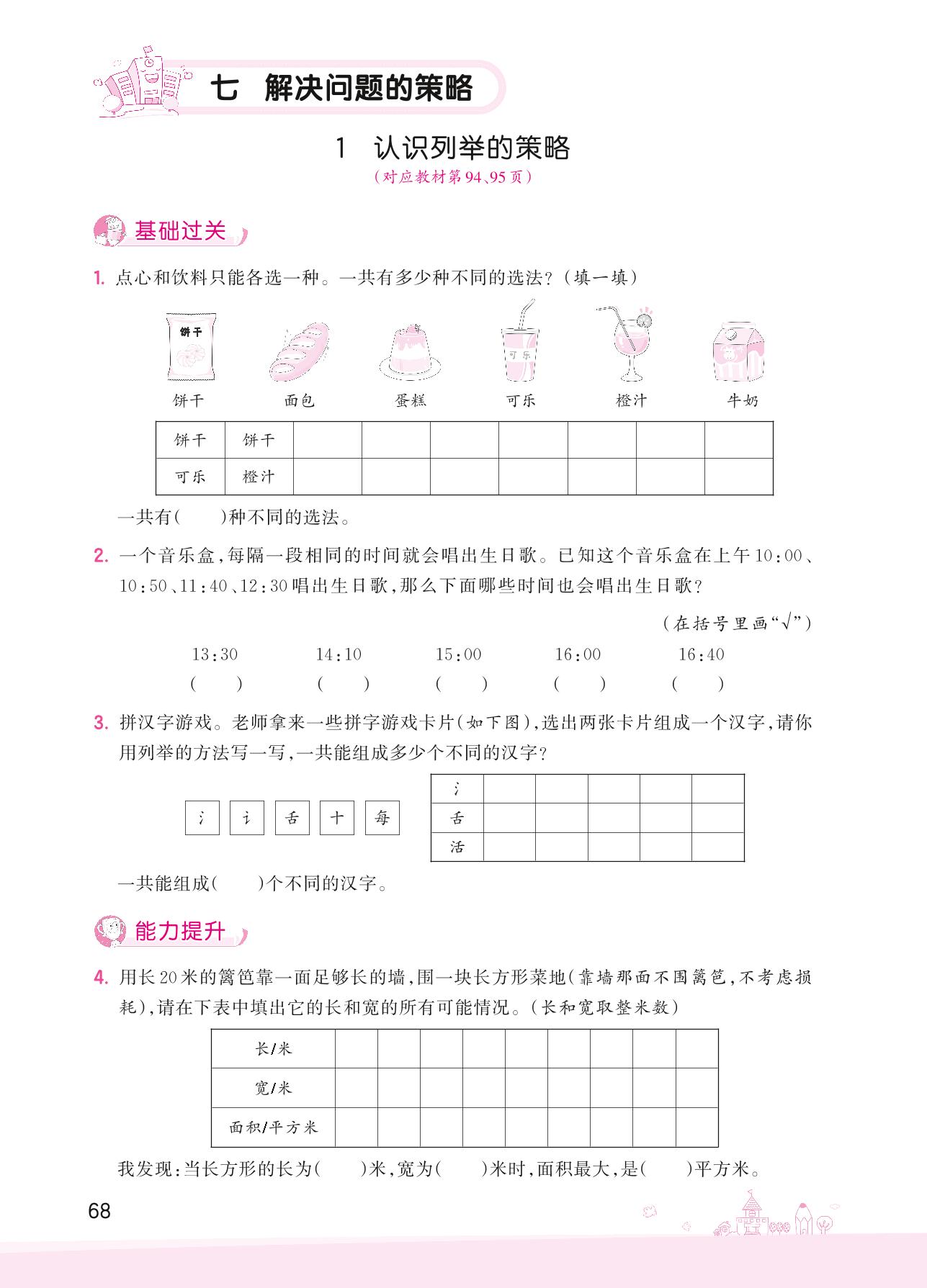 2022上册五年级数学苏教版 七 解决问题的策略——1 认识列举的策略