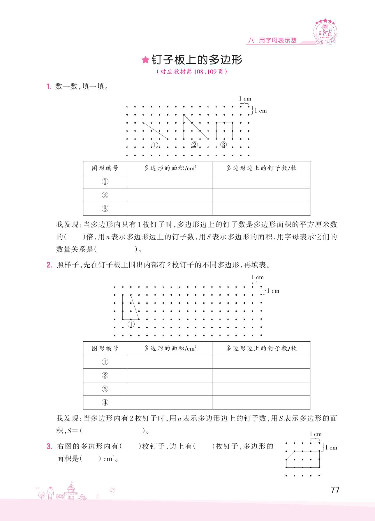2022上册五年级数学苏教版 八 用字母表示数——钉子板上的多边形