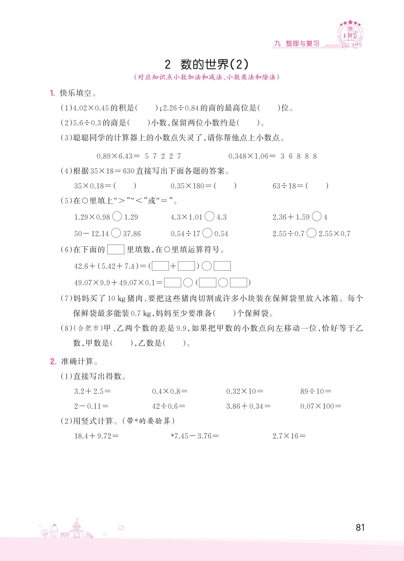 2022上册五年级数学苏教版 九 整理与复习——2 数的世界(2)