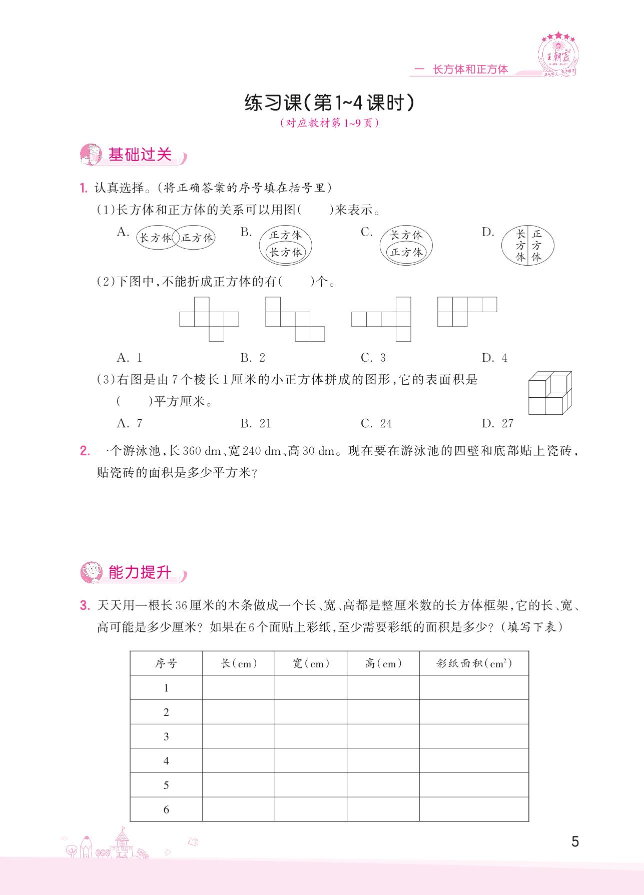 2022上册六年级数学苏教版 一 长方体和正方体——练习课(第1~4课时)