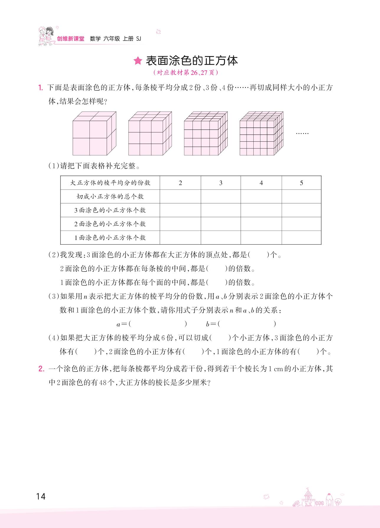 2022上册六年级数学苏教版 一 长方体和正方体——表面涂色的正方体