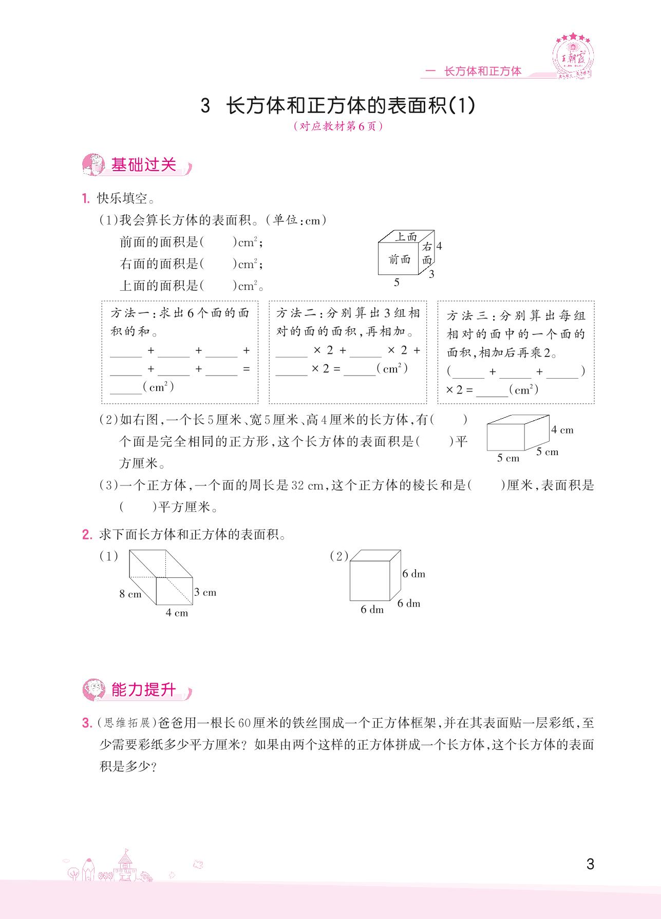 2022上册六年级数学苏教版 一 长方体和正方体——3 长方体和正方体的表面积(1)
