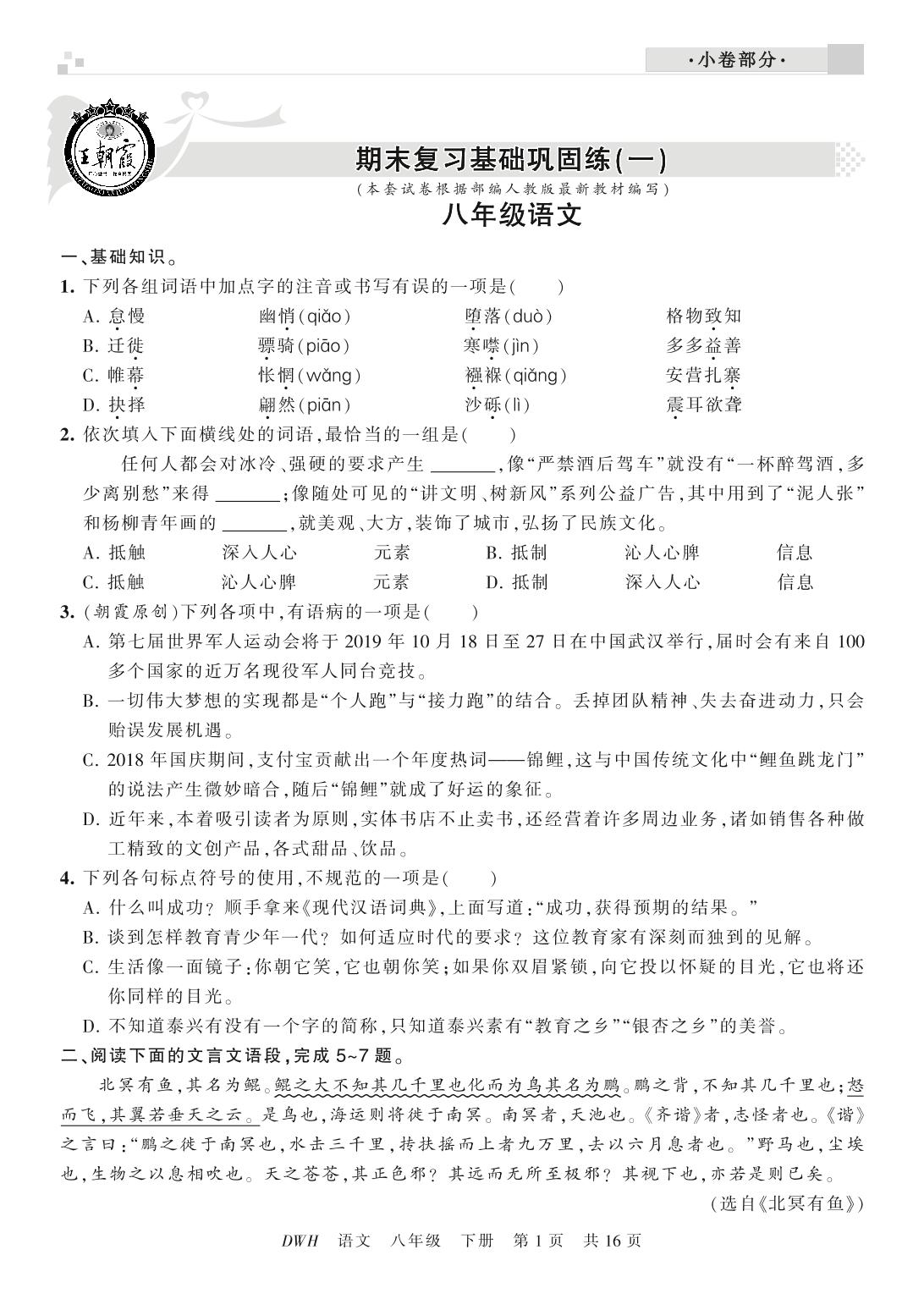 王朝霞期末小卷——期末复习基础巩固练八年级下册语文(人教版)_R21080243600【0】