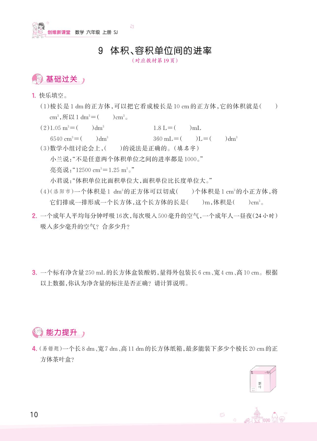 2022上册六年级数学苏教版 一 长方体和正方体——9 体积、容积单位间的进率