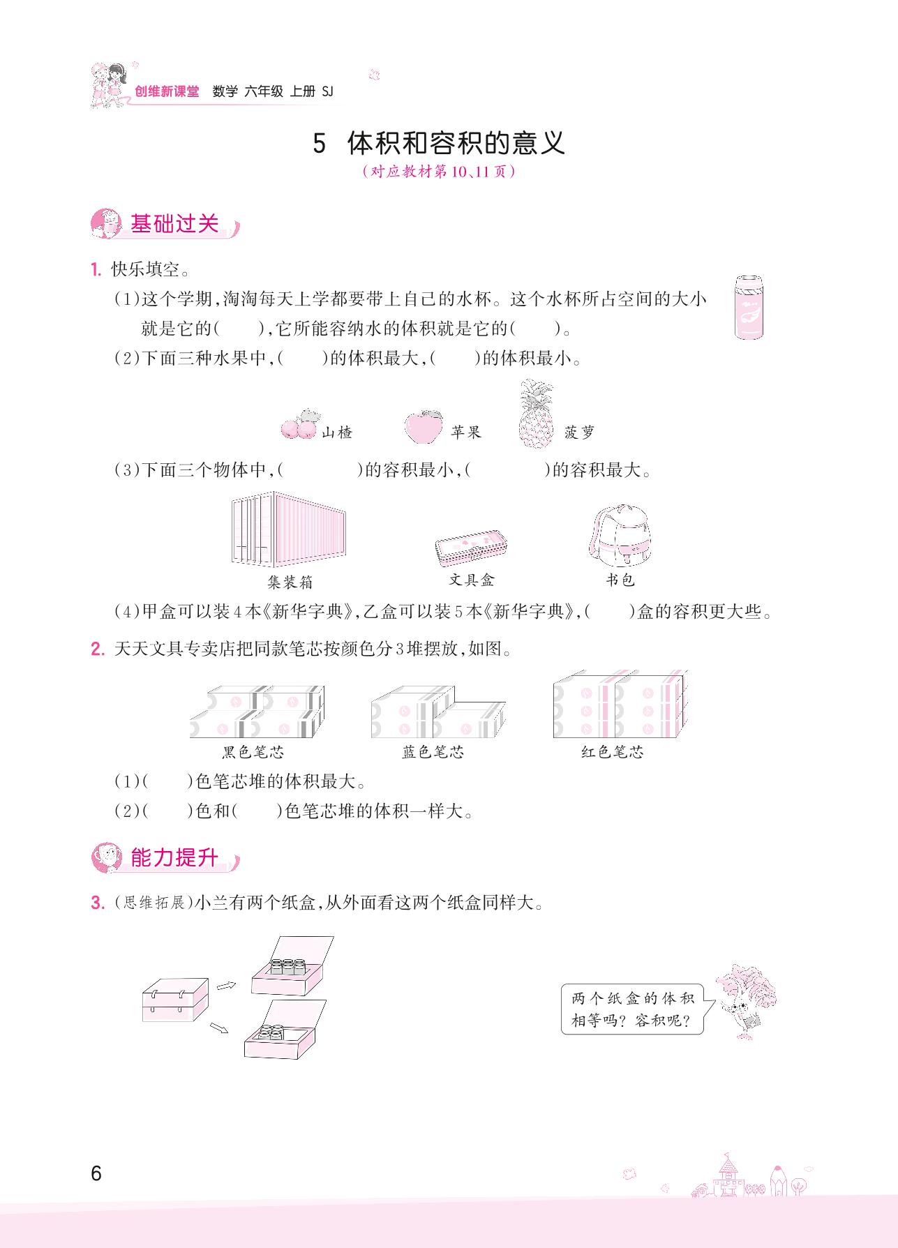 2022上册六年级数学苏教版 一 长方体和正方体——5 体积和容积的意义