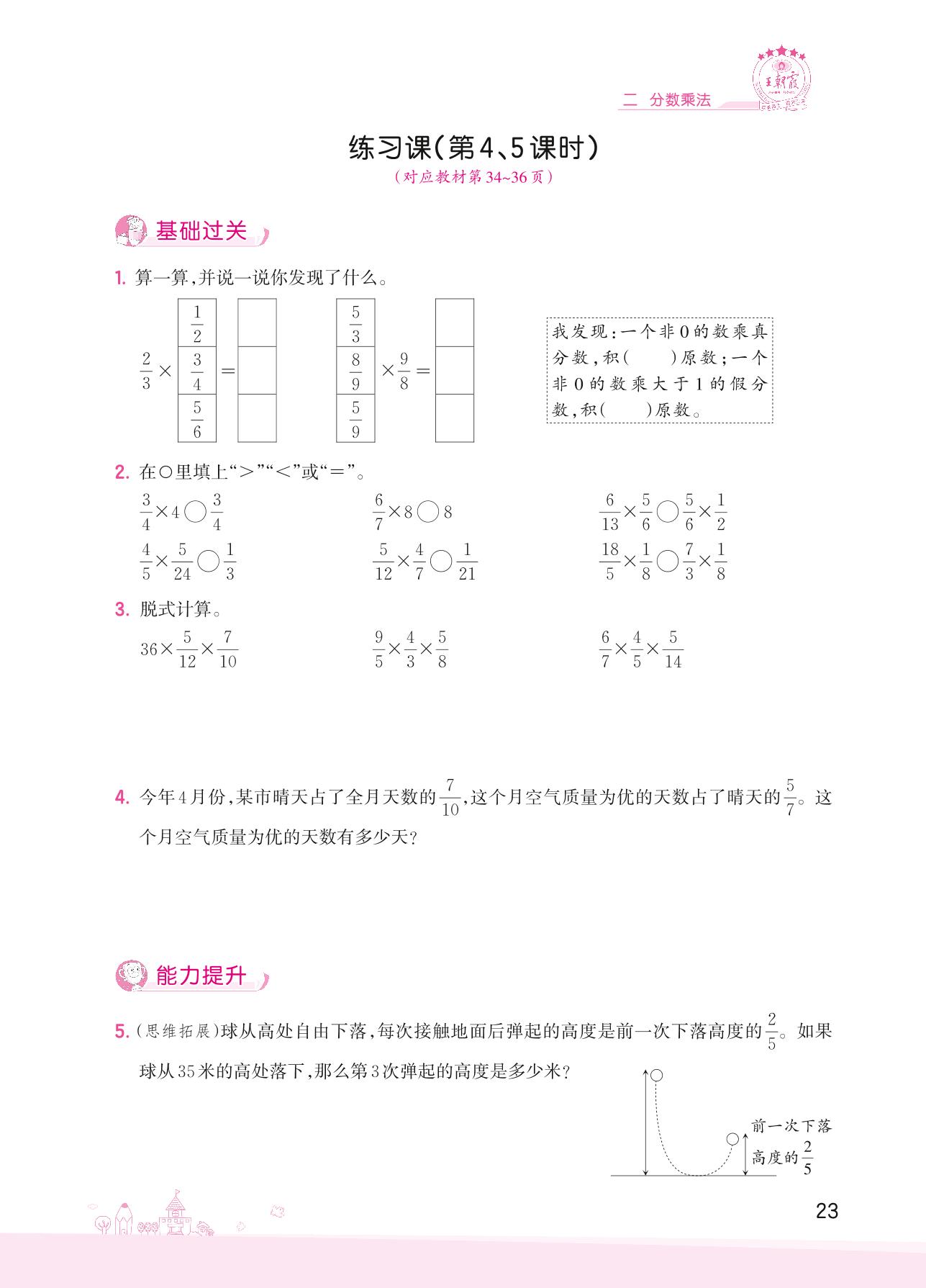 2022上册六年级数学苏教版 二 分数乘法——练习课(第4、5课时)