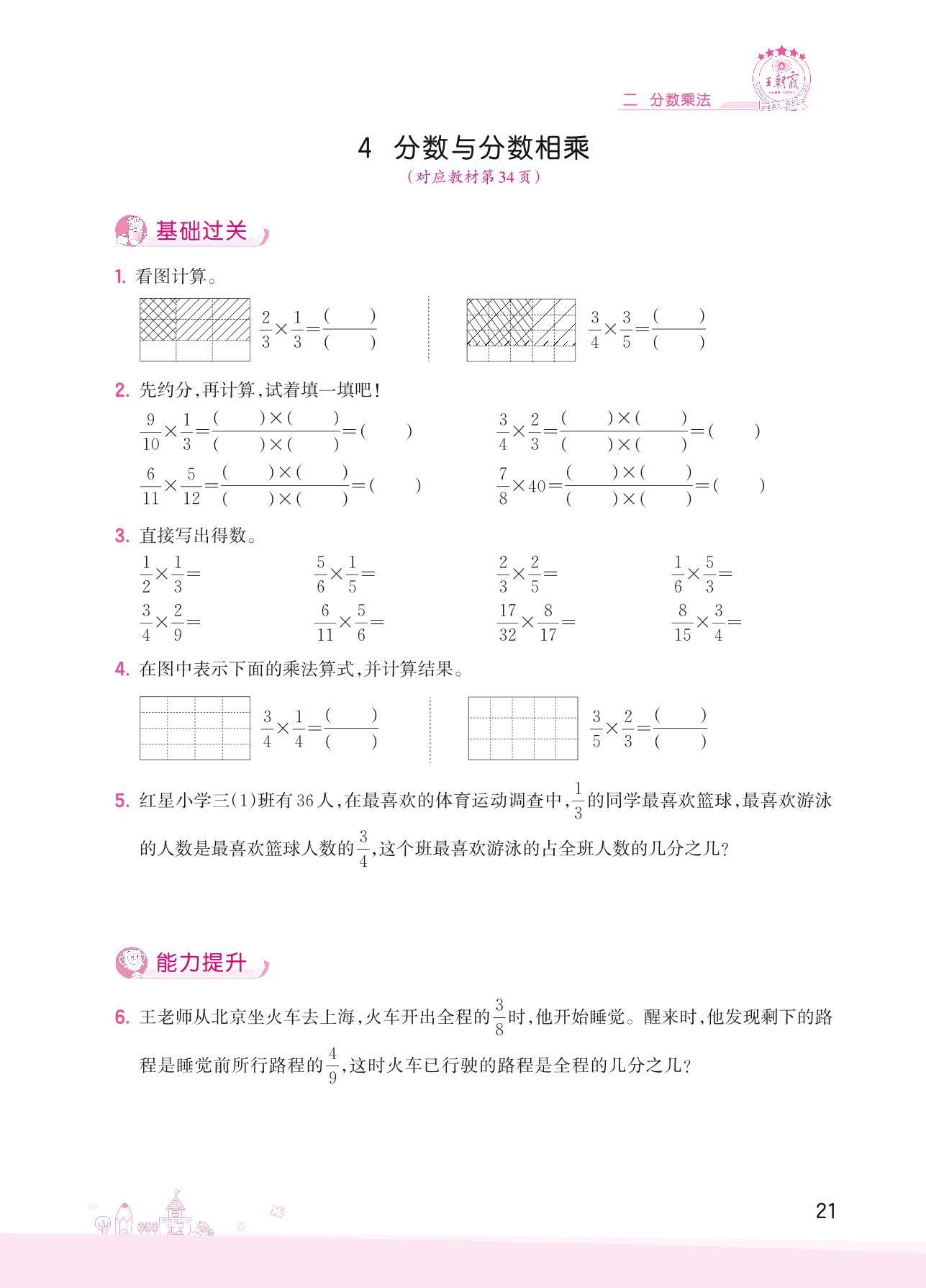 2022上册六年级数学苏教版 二 分数乘法——4 分数与分数相乘