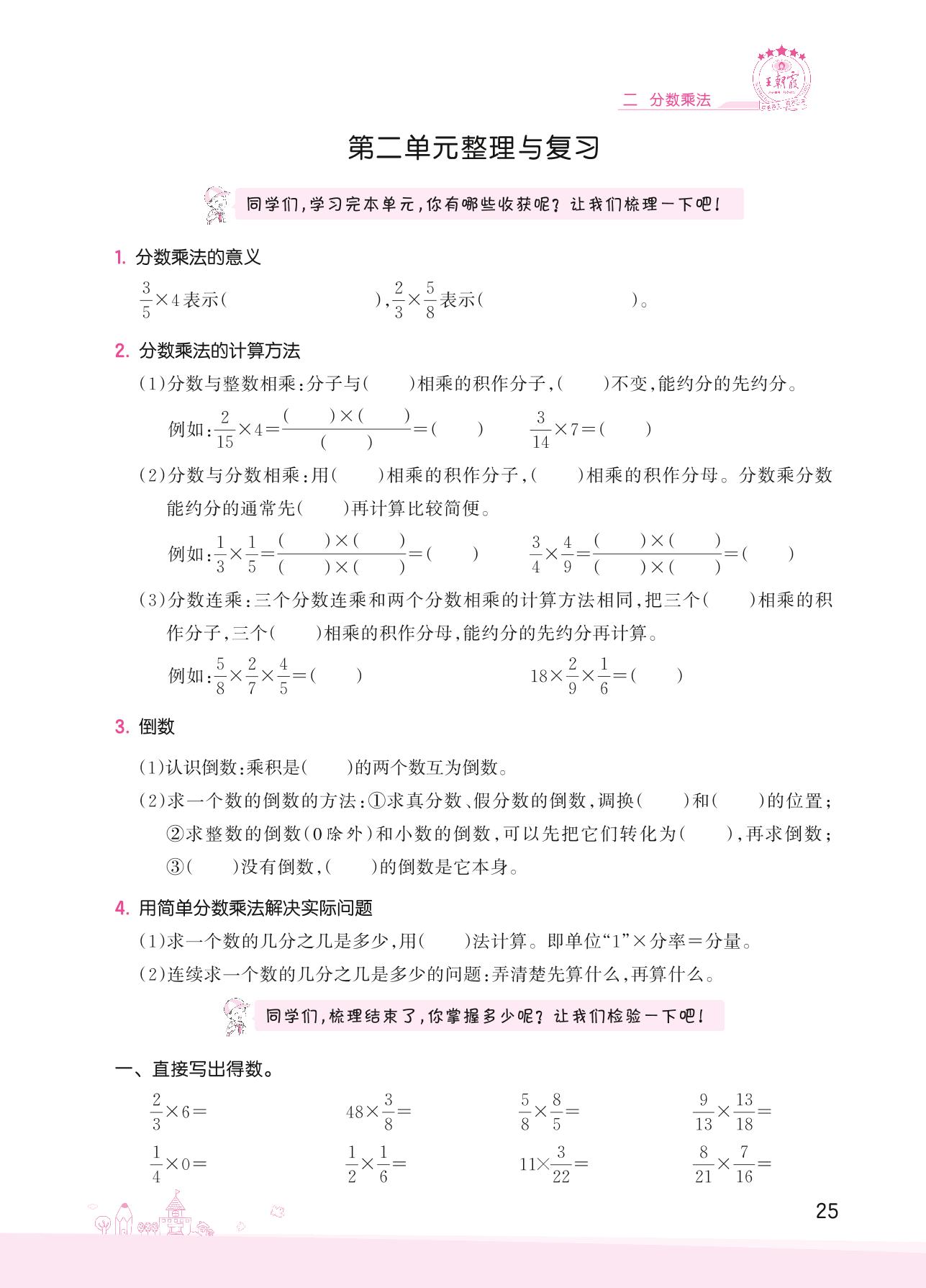 2022上册六年级数学苏教版 二 分数乘法——第二单元整理与复习