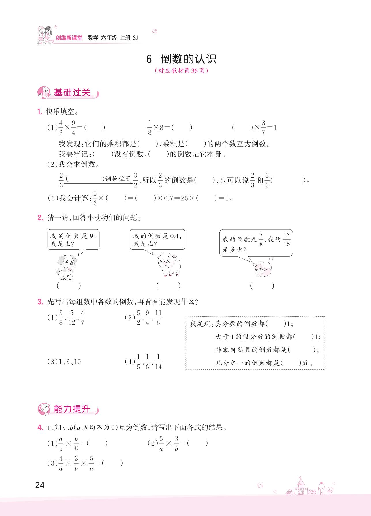 2022上册六年级数学苏教版 二 分数乘法——6 倒数的认识