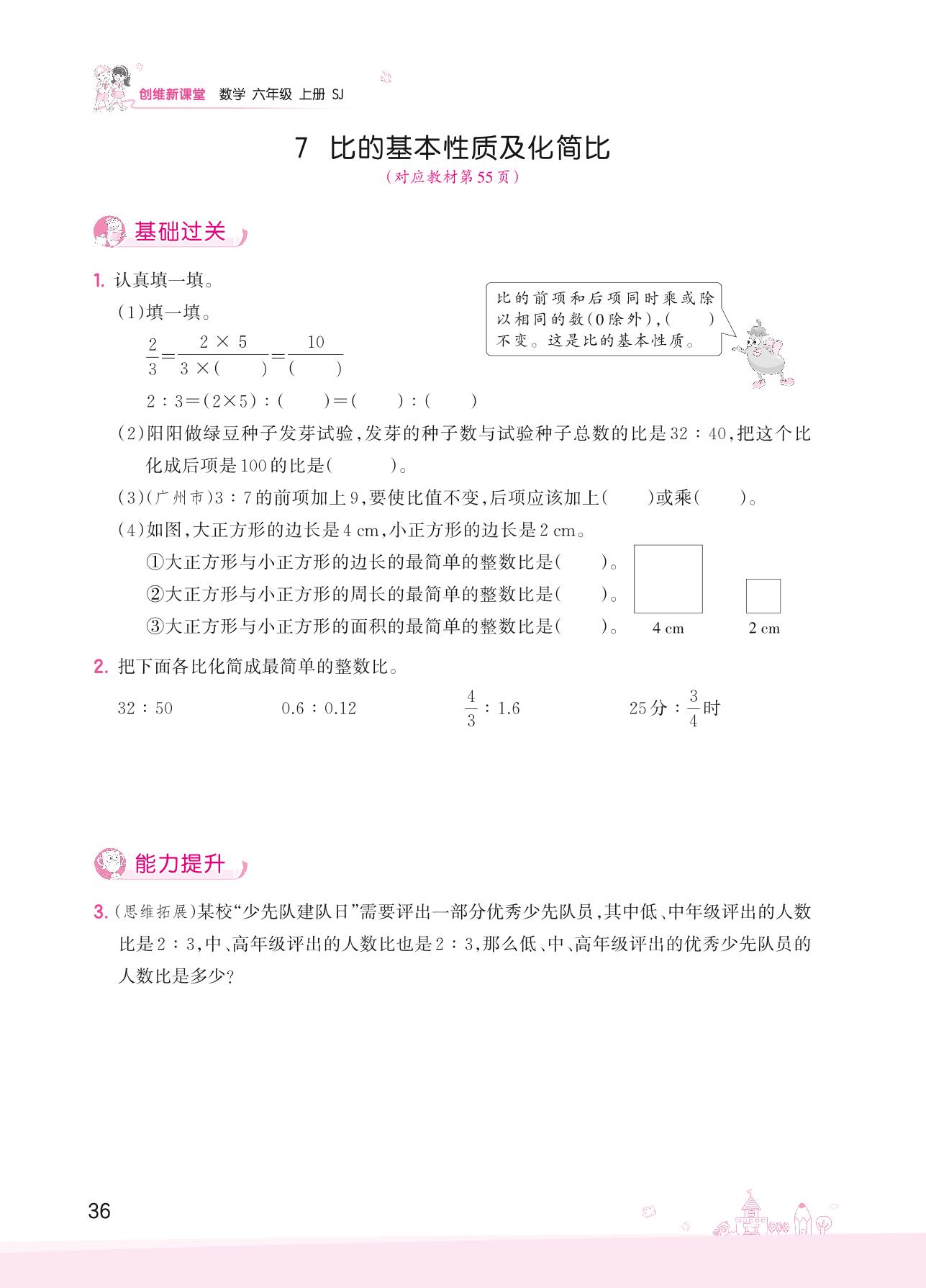 2022上册六年级数学苏教版 三 分数除法——7 比的基本性质及化简比