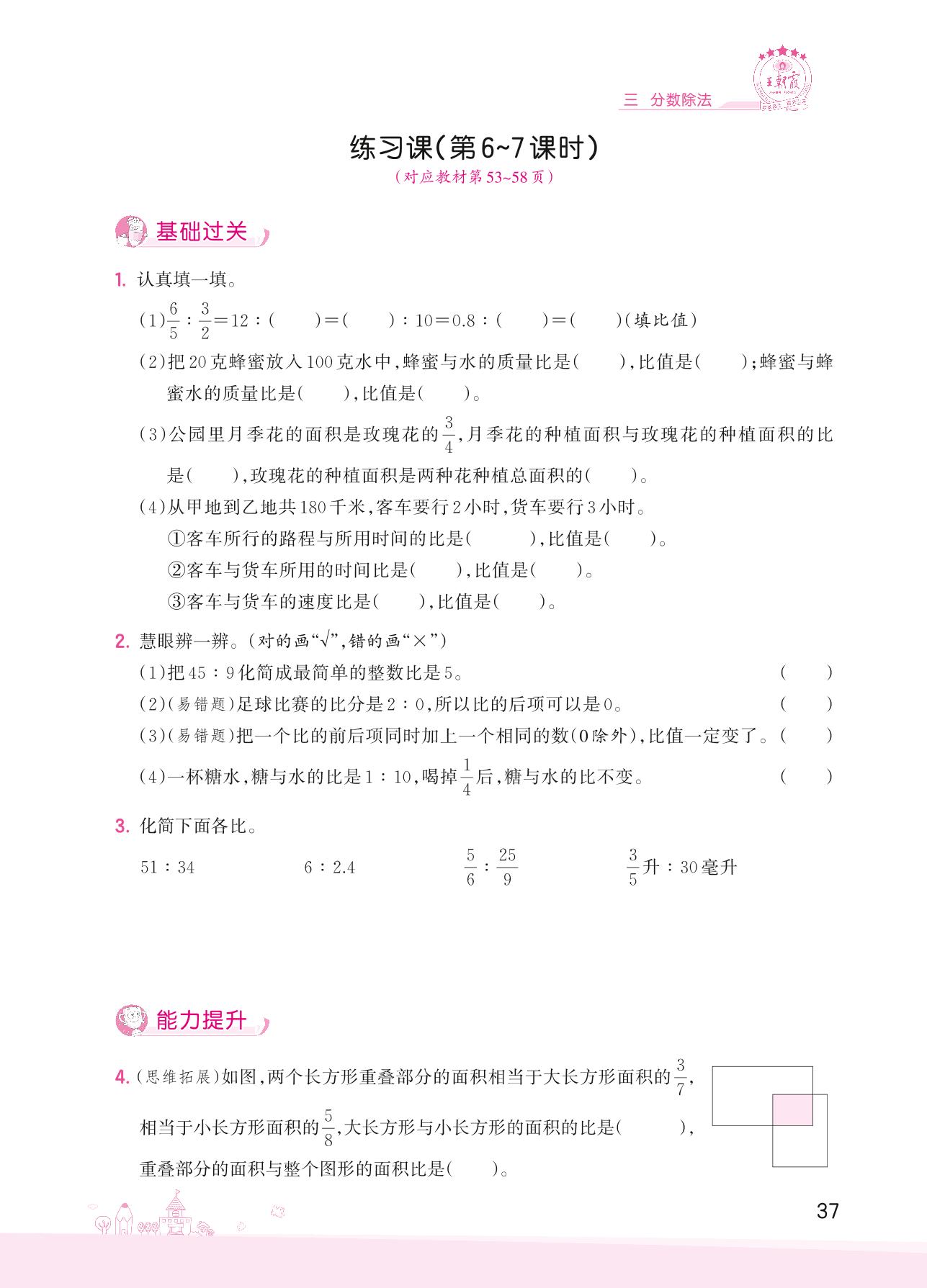 2022上册六年级数学苏教版 三 分数除法——练习课(第6~7课时)