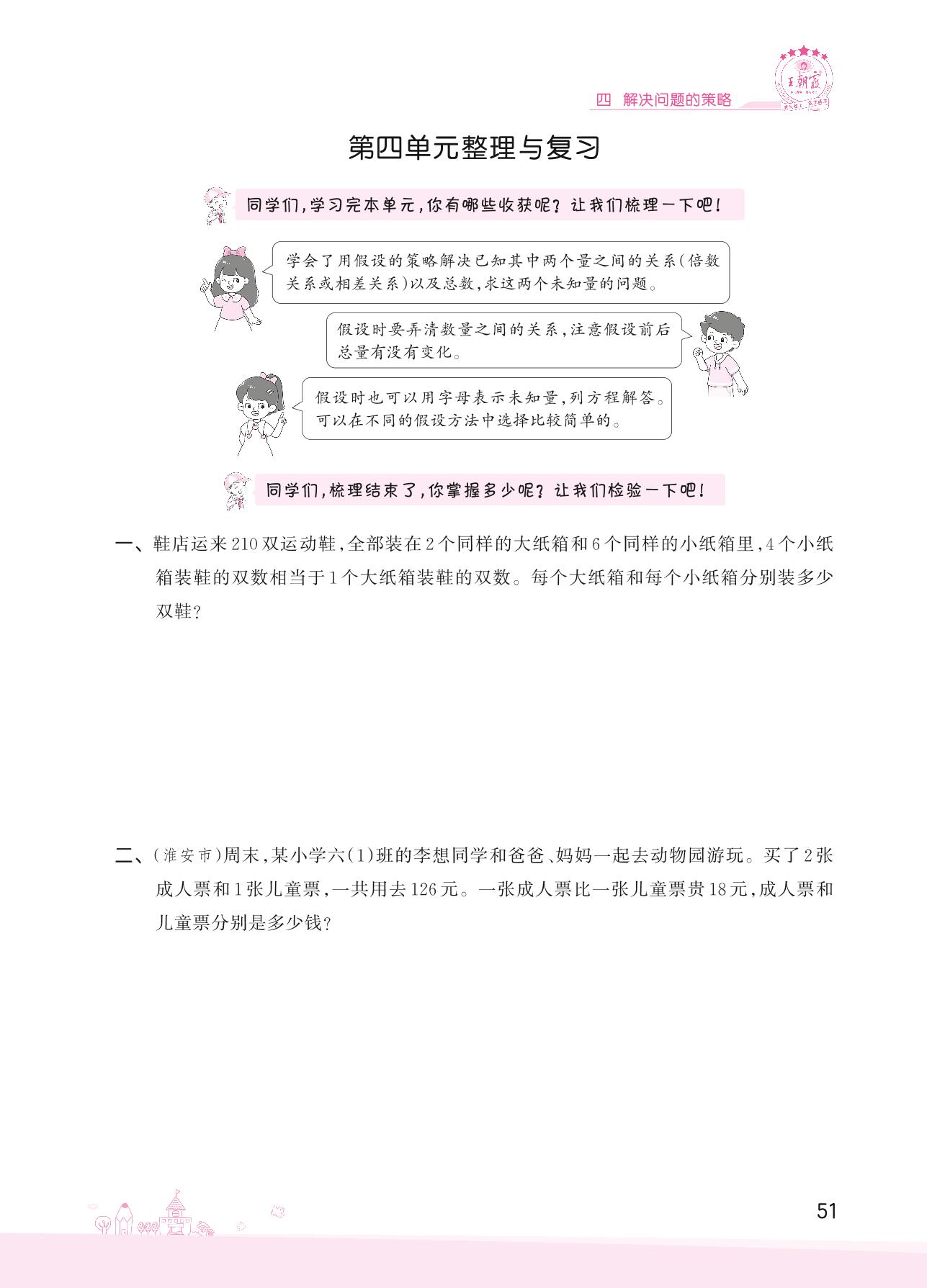 2022上册六年级数学苏教版 四 解决问题的策略——第四单元整理与复习