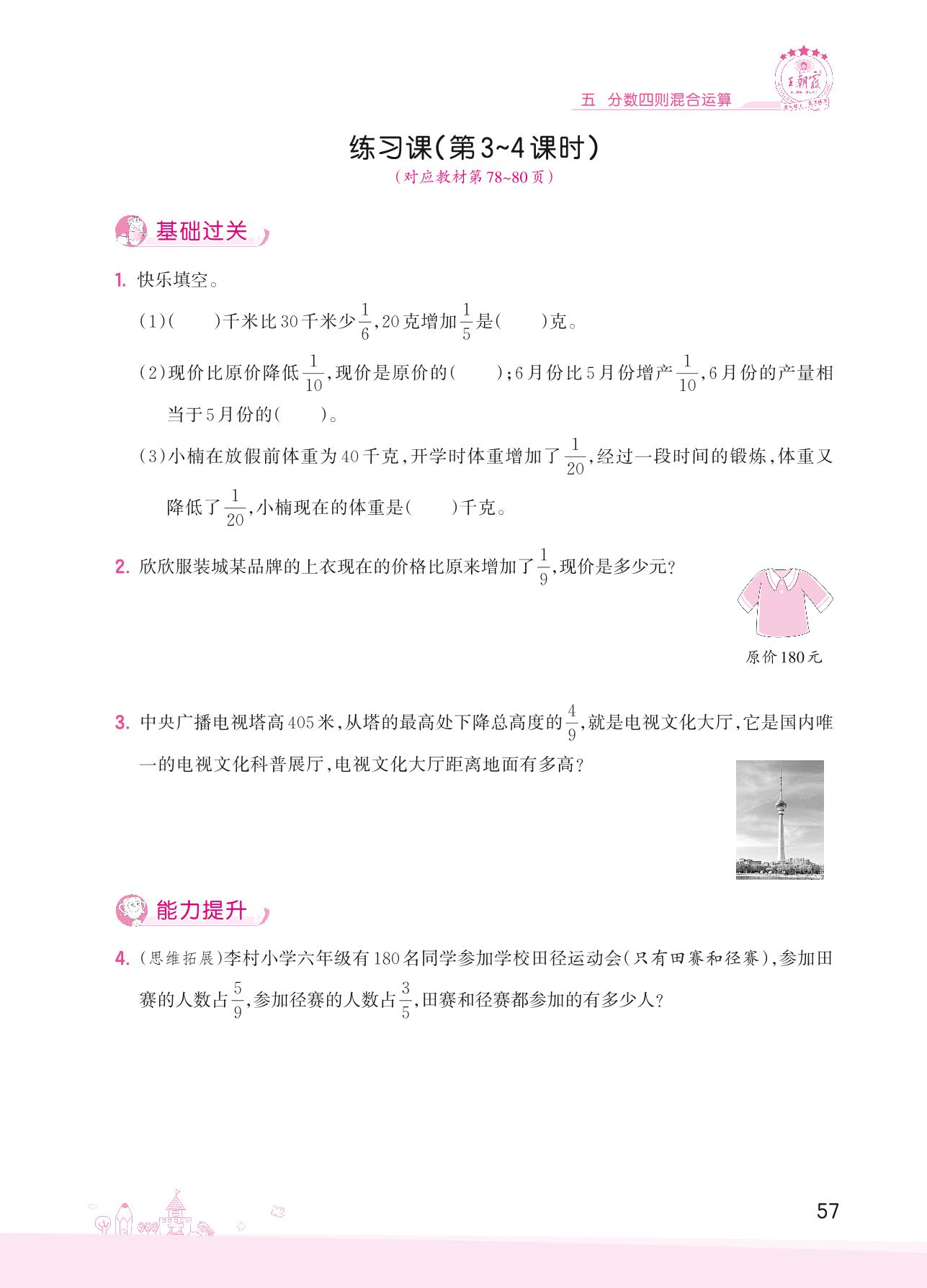 2022上册六年级数学苏教版 五 分数四则混合运算——练习课(第3~4课时)
