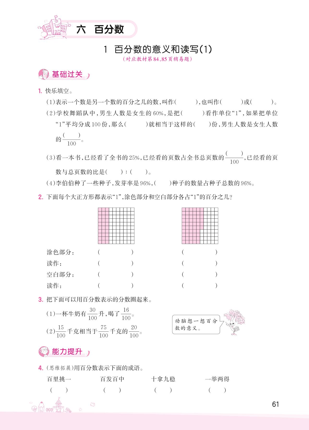 2022上册六年级数学苏教版 六 百分数——1 百分数的意义和读写(1)